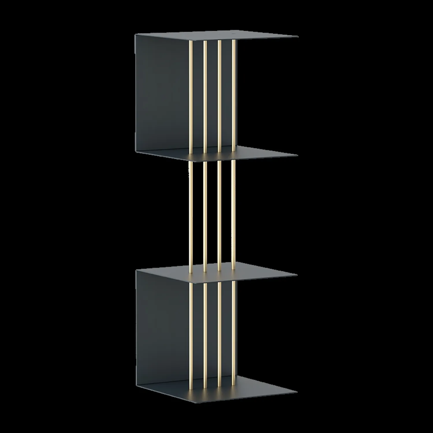 Hyldens smarte konstruktion gør det muligt at lave to hylder om til tre ved at bruge fire ekstra , der placeres mellem de to hylder.