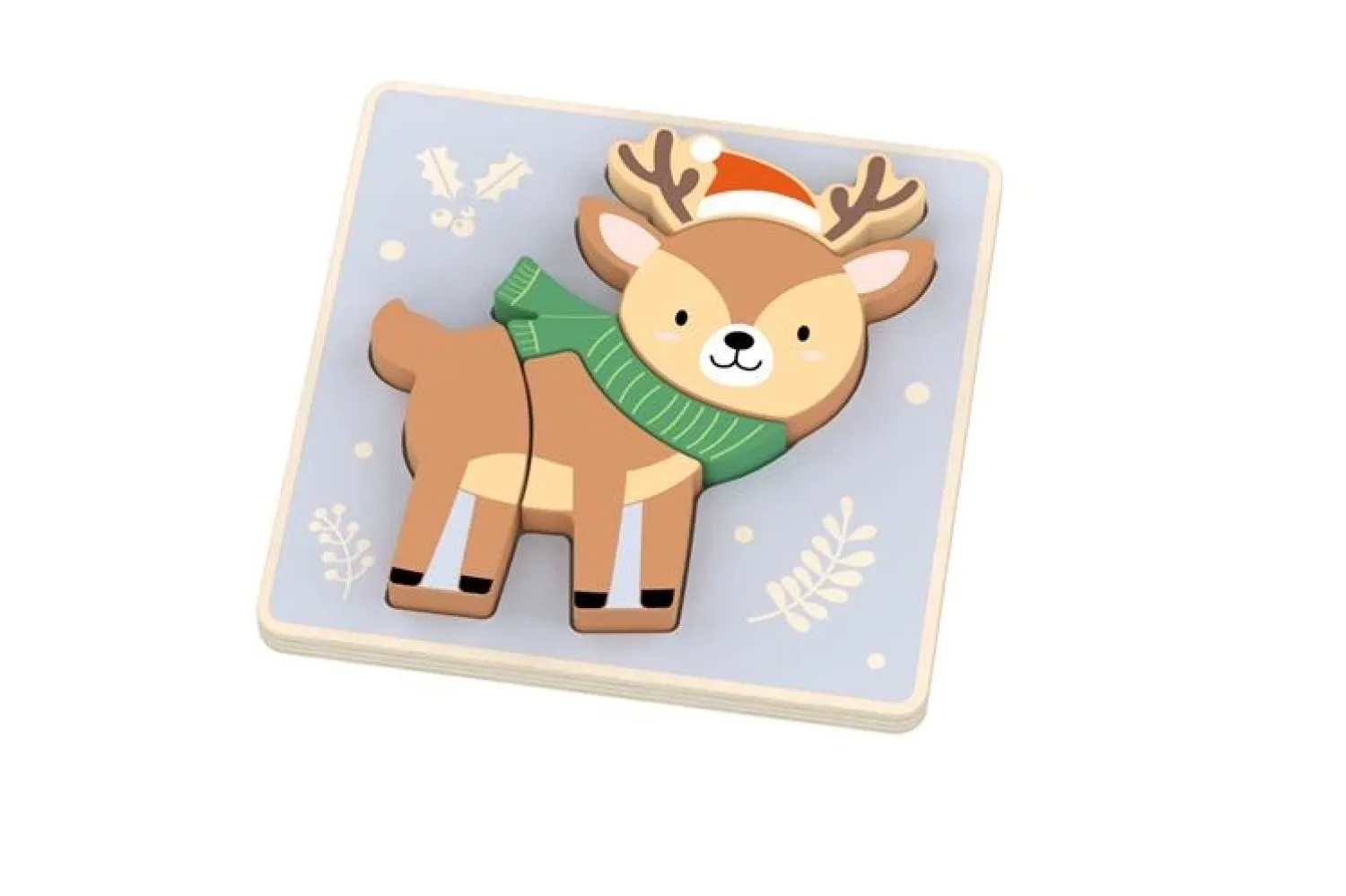 Magni – Julepuslespil med rensdyr, fremstillet af FSC-certificeret træ, er et farverigt puslespil designet specielt til de yngste pusleentusiaster. Det introducerer børn til glæden ved at samle brikker og er lavet af holdbare materialer, der sikrer en sikker legeoplevelse for de små.