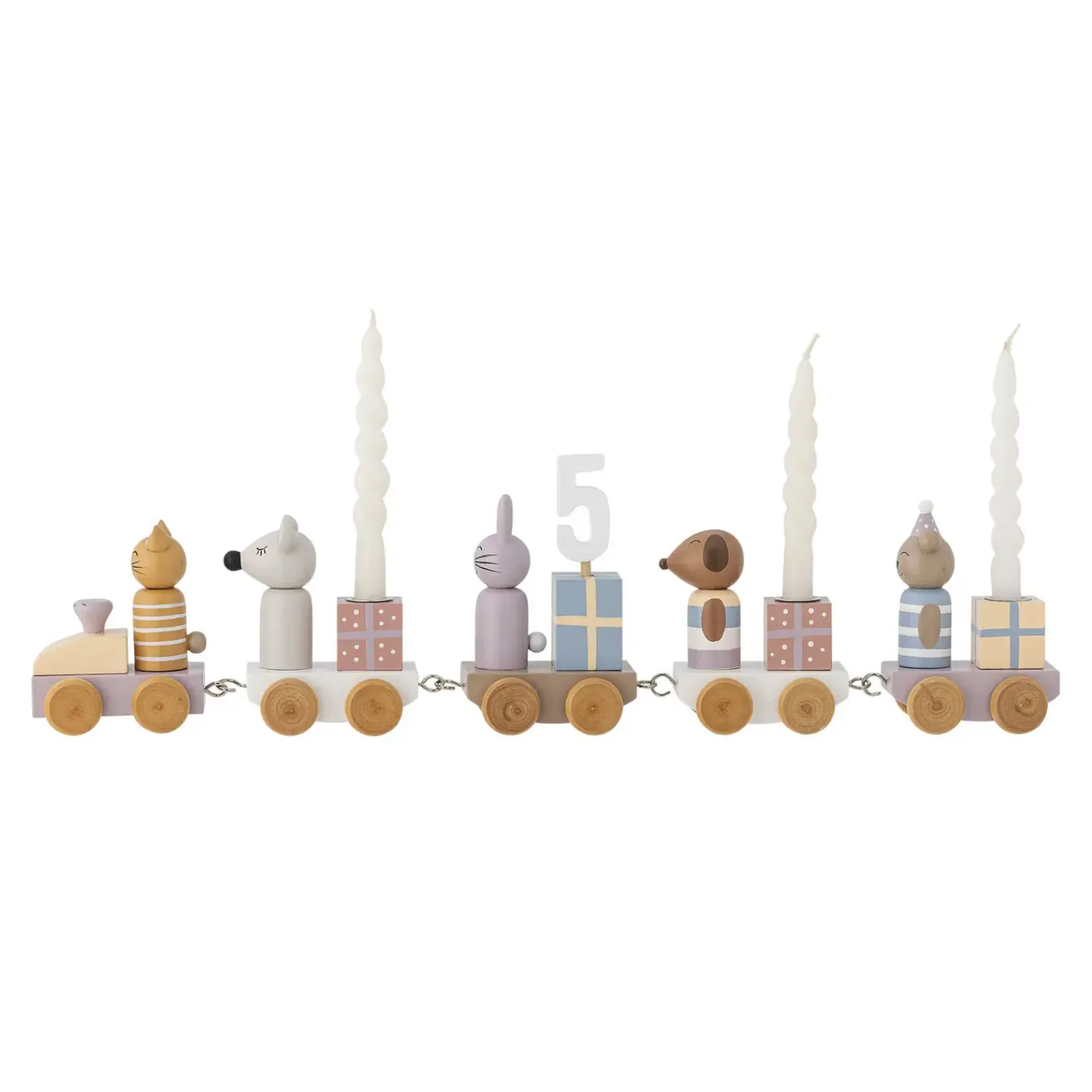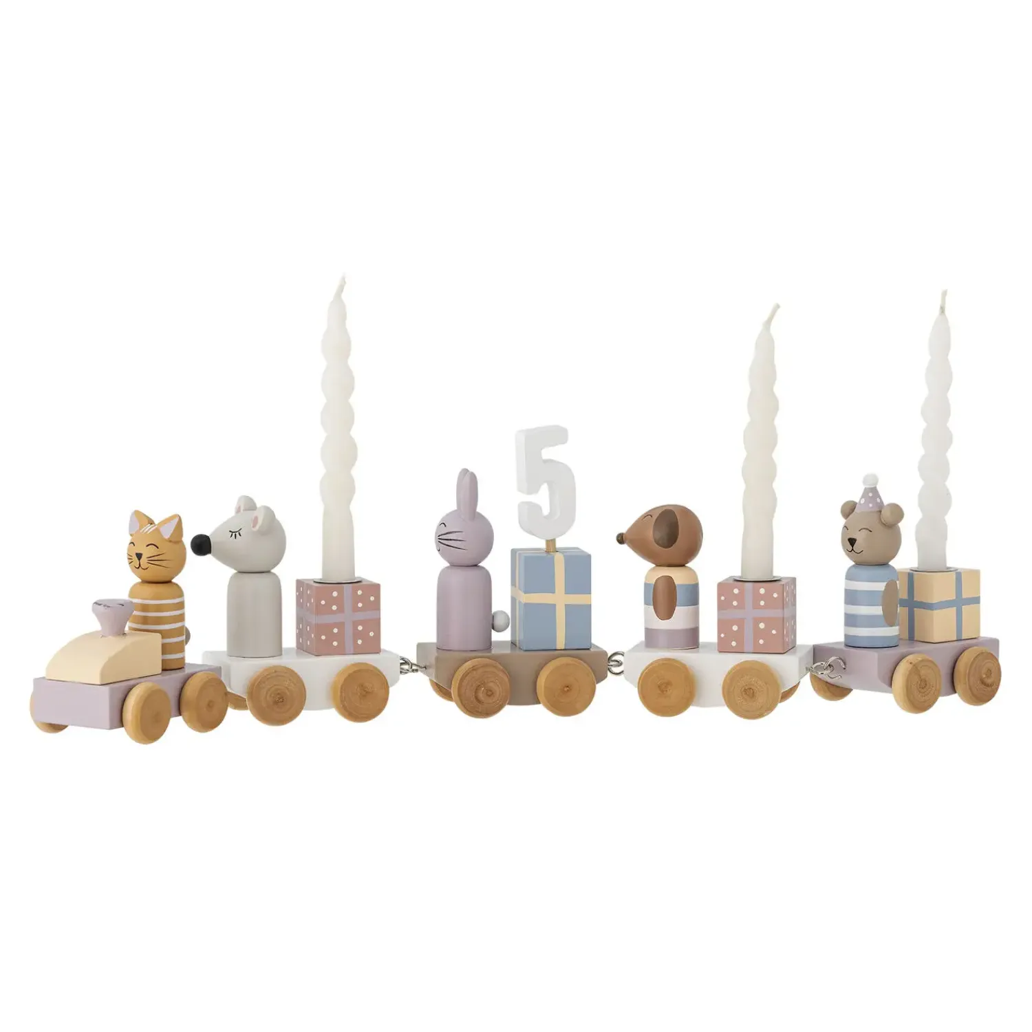 Du kan nemt tilpasse toget til enhver fødselsdag ved at skifte tallene ud. De medfølgende cifre fra 0 til 9 giver dig mulighed for at markere alle aldre. De tre indbyggede lysestager tilfører en varm og festlig stemning.