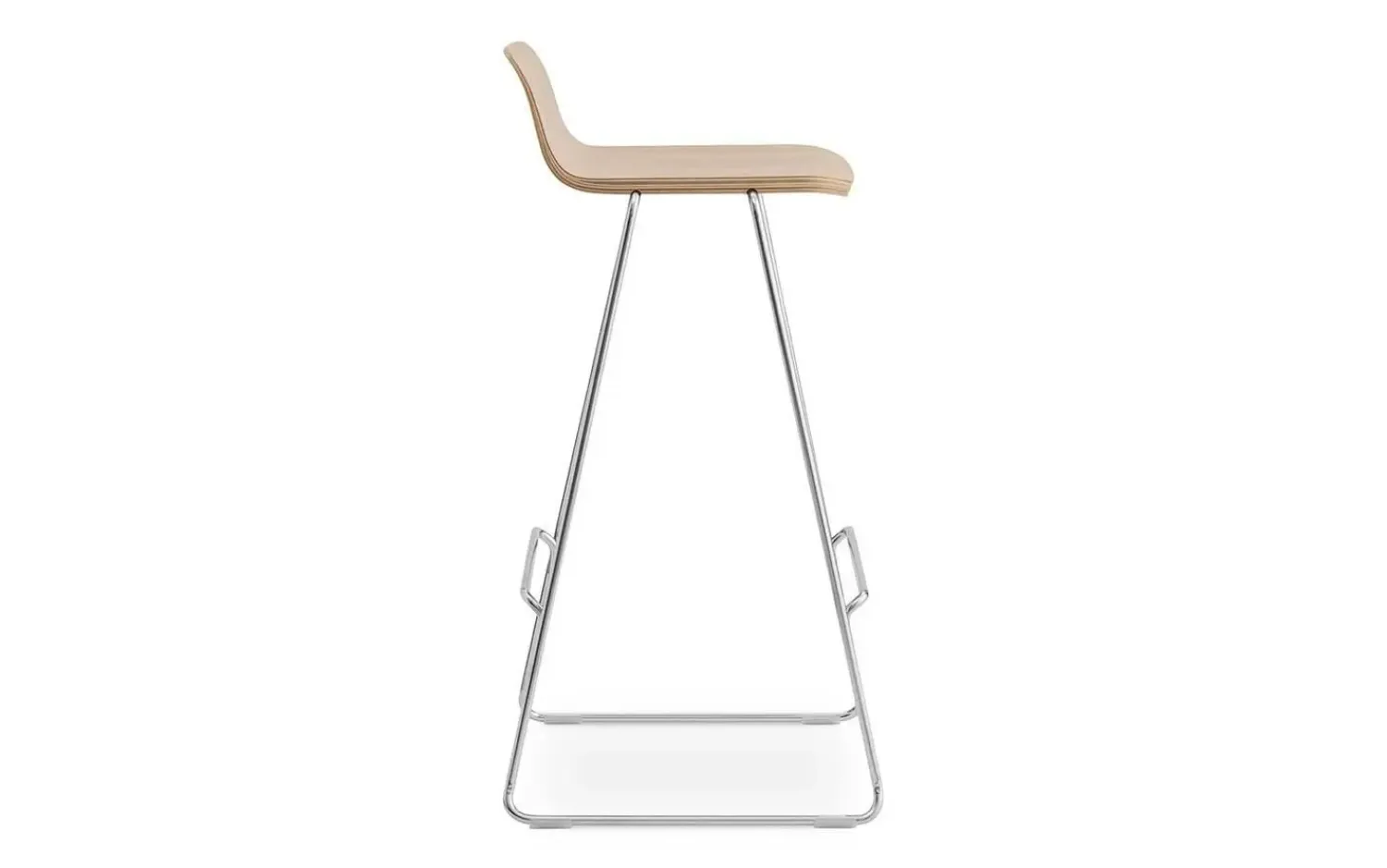 Skallen er lavet af flere lag finer presset sammen, hvilket giver en solid konstruktion uden unødig vægt. Stålbunden er integreret direkte i skallen, så der ikke er synlige skruer eller beslag. Barstolen fås både med og uden ryglæn, så du kan vælge efter dit behov.