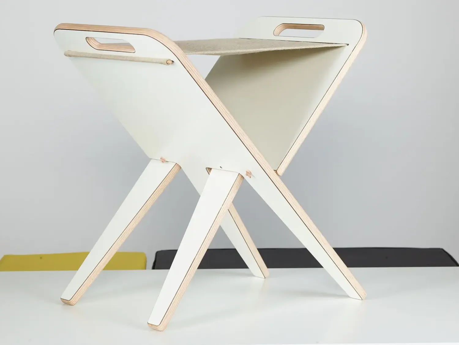 Klaburetten dukkede højst overraskende op i arkivet i form af Piet Heins egen prototype, samt et par meget enkle produktbeskrivelser fra 1964, hvor han satte de sidste streger på sin idé. Klaburetten er et universalmøbel, med uanede anvendelsesmuligheder. Læn dig tilbage i en dejlig stol og brug klaburetten som fodskammel eller brug den som en ekstra stol, som kan stilles væk, hvis du har brug for mere plads. Funktionalitet er nøgleordet bag dette møbel fra Piet Hein, der både designet og produceret i Danmark.