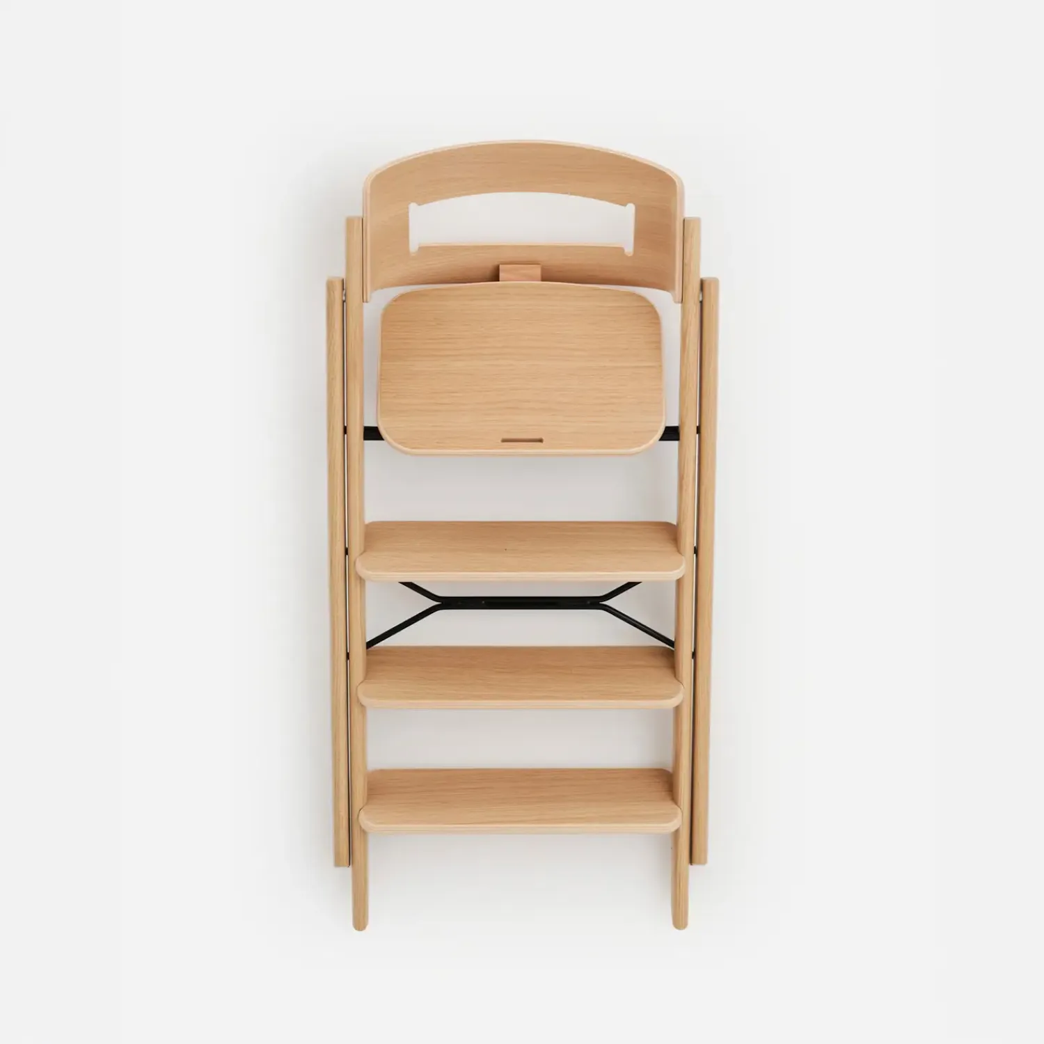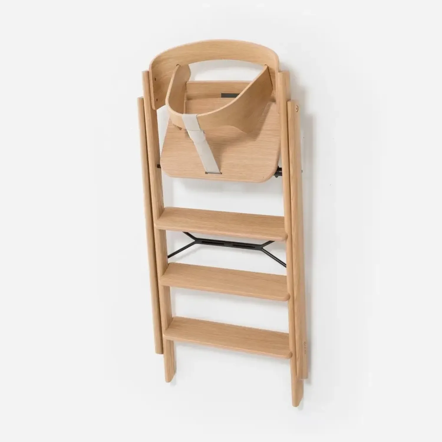 Egetræet er valgt for sin naturlige styrke og holdbarhed. Det betyder, at du får en pålidelig løsning til sikker opbevaring af din højstol. Krogen er specifikt designet til at holde stolen sikkert på plads på væggen.