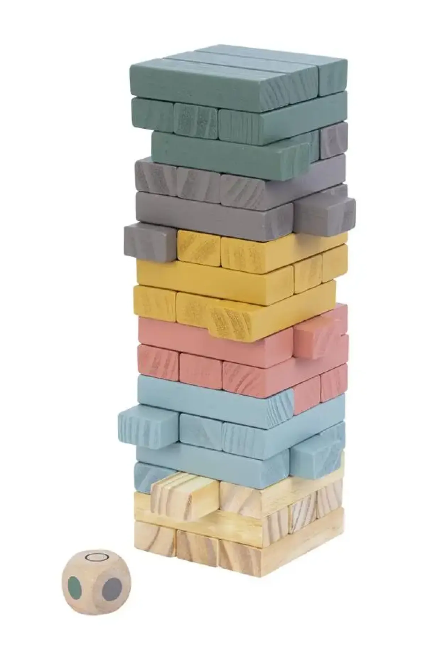 De 48 spillebrikker er designet til at passe sammen og danne en stabil konstruktion. Tårnet måler 7,5 x 7,5 x 26,5 cm og vejer 696 gram. Den medfølgende farvekodede terning tilføjer et ekstra element til spillet, som kan bruges på forskellige måder under legen.