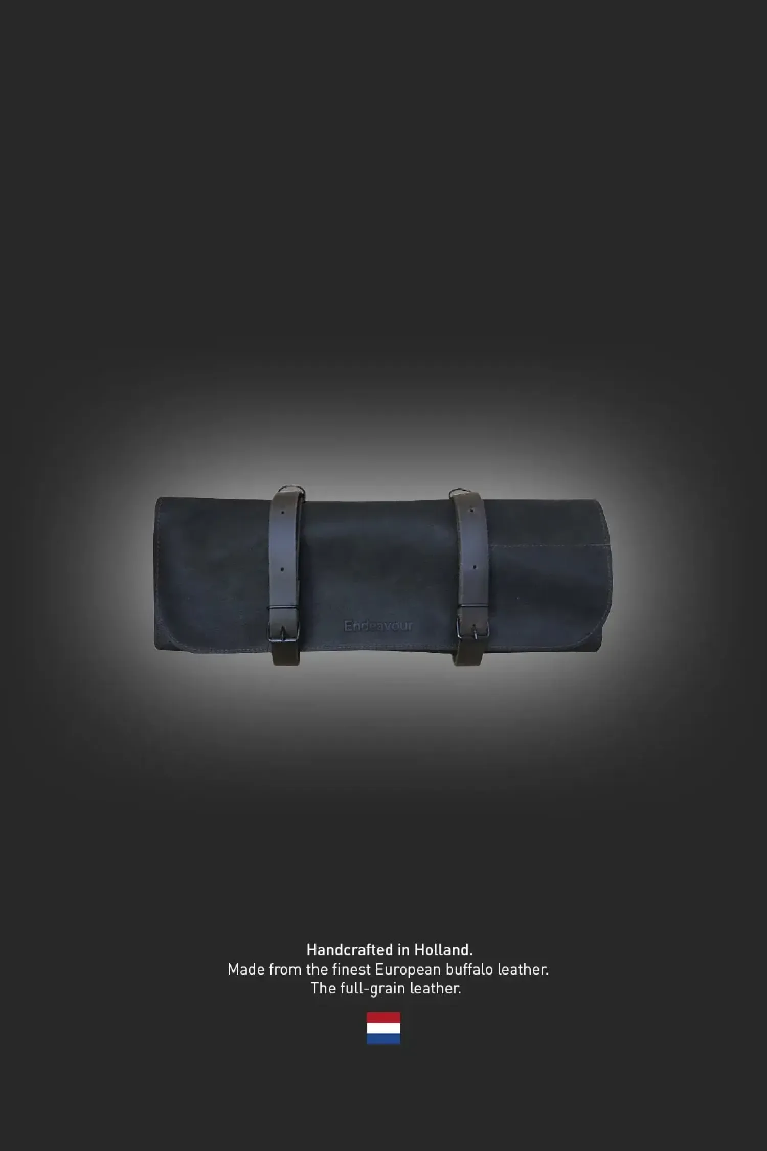 Endeavour knivmappen er håndlavet i Holland og udført i det lækreste europæiske bøffellæder. Mappen har 5 lommer og er designet til at opbevare dine knive sikkert og stilfuldt. Full Grain anilinlæderet, som er brugt, er kun blevet farvet og olieret, hvilket giver en blød og holdbar overflade. Med tiden vil læderet kun blive smukkere.