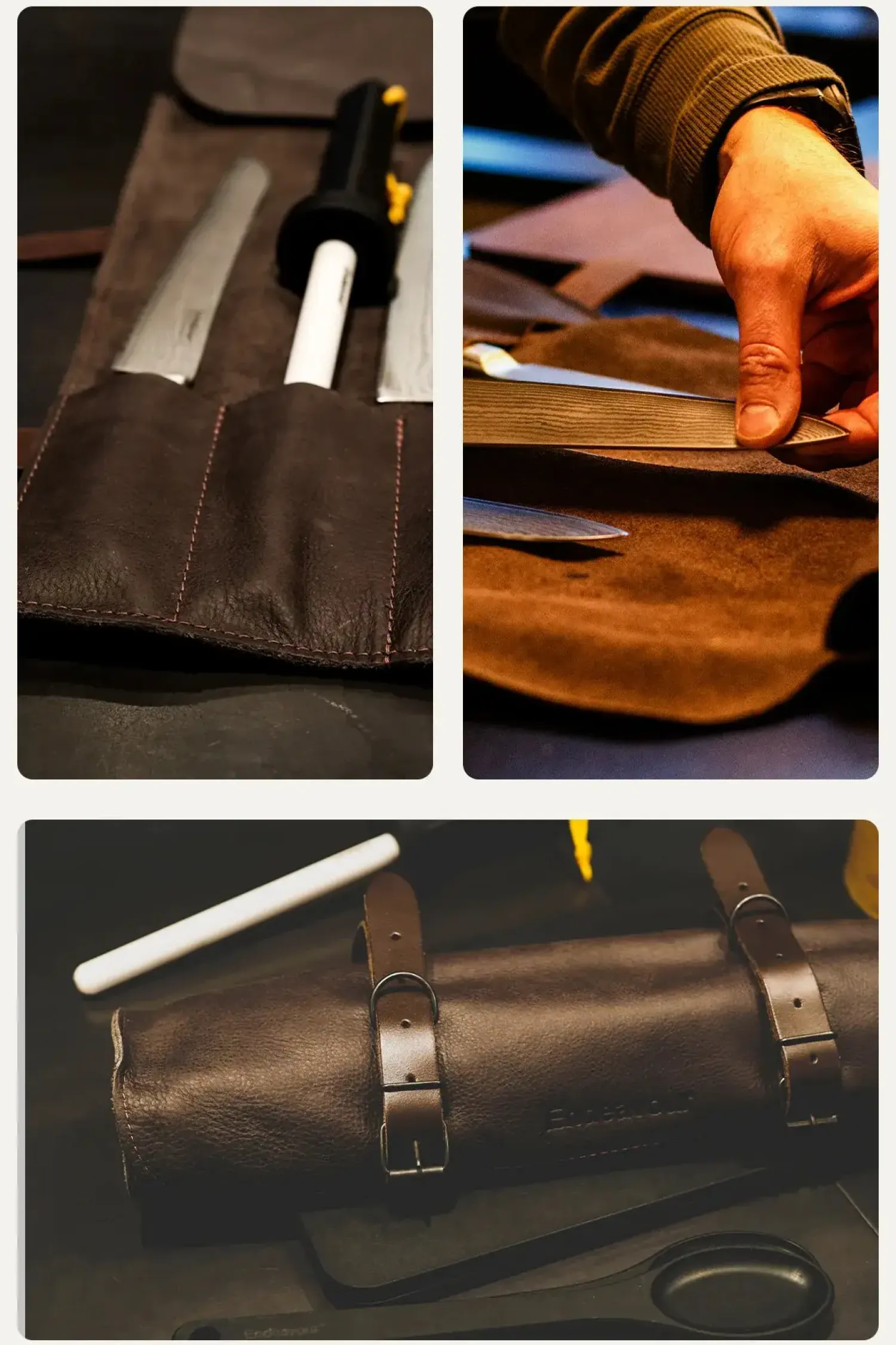 Knivmappen indeholder 5 lommer, som giver dig mulighed for at organisere dine knive effektivt. Hver lomme er designet til at holde knivene sikkert på plads, hvilket reducerer risikoen for skader på både knivene og mappen.