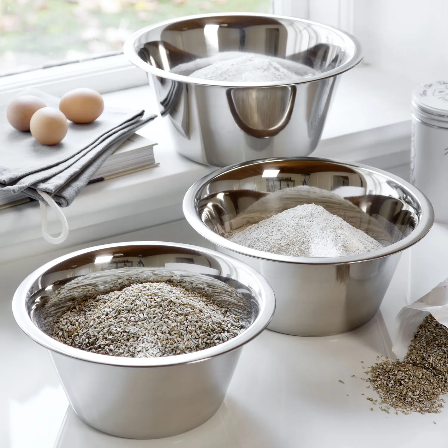 En rummelig køkkenskål i blankpoleret rustfrit stål med en kapacitet på 2,5 liter. Den blanke overflade gør rengøringen nem og hurtig, mens materialet sikrer lang holdbarhed i dit køkken.