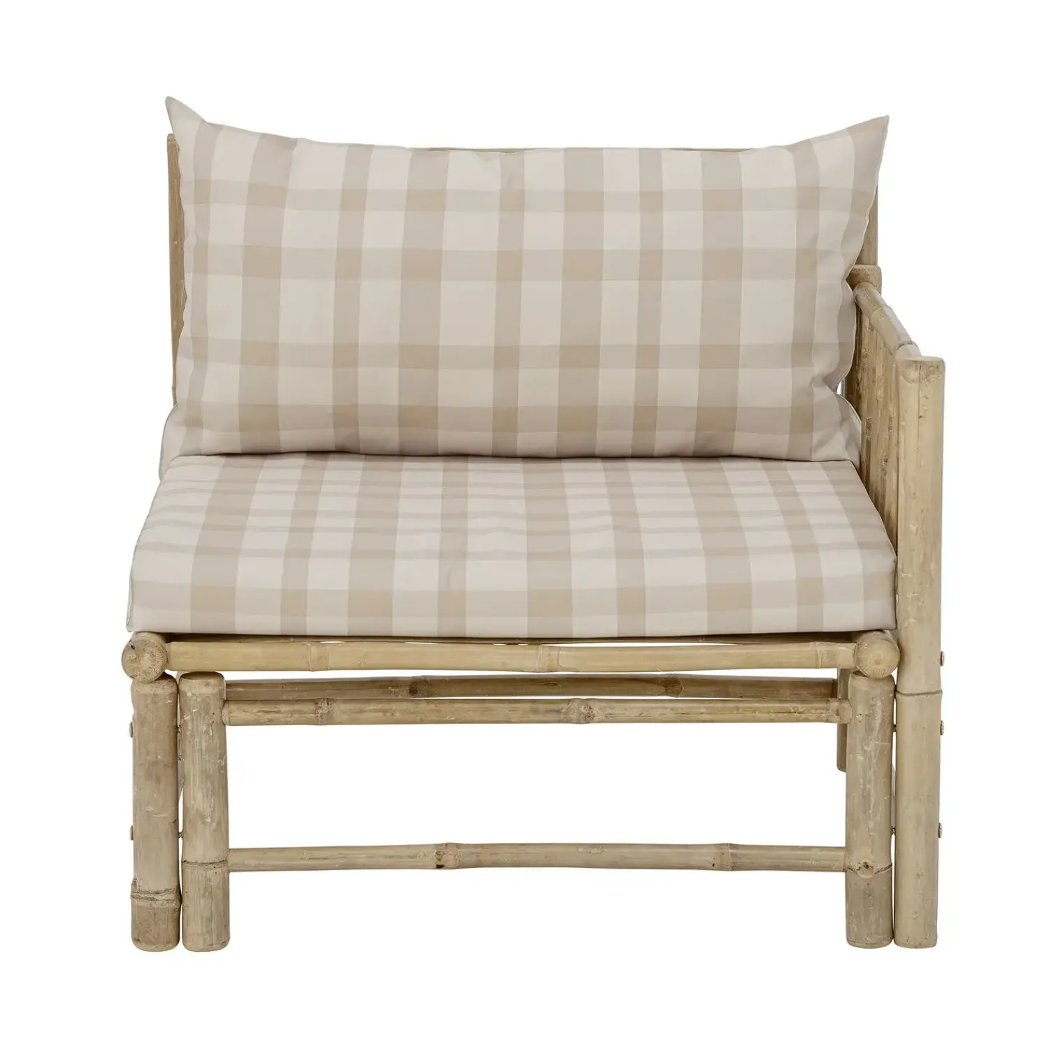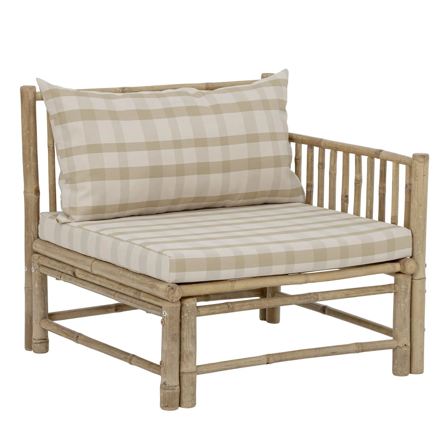 Korfu Module Sofa Right Corner fra Bloomingville er en del af Korfu-serien, hvor du kan mikse og matche modulerne og lave din egen udendørs sofa baseret på dine behov! Serien er lavet af bambus for at opnå den organiske, hyggelige og hjemlige følelse af naturmaterialet. Designet er fantastisk med et skandinavisk touch med puder lavet af polyester i smukke bløde farver. Modulerne er nemme at samle med velcro ved hvert modul. Lige perfekt til terrassen, have vores lidt orangeri.