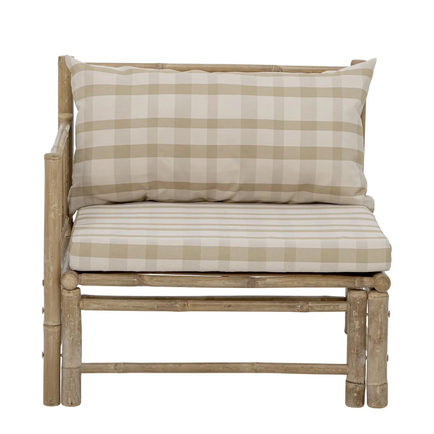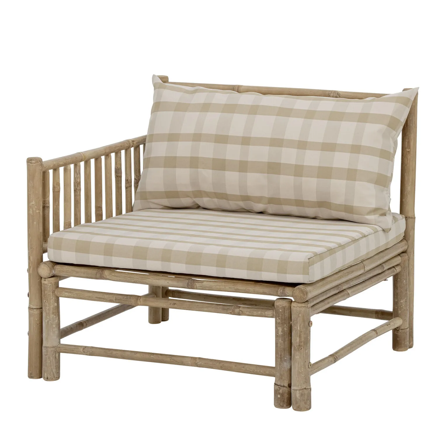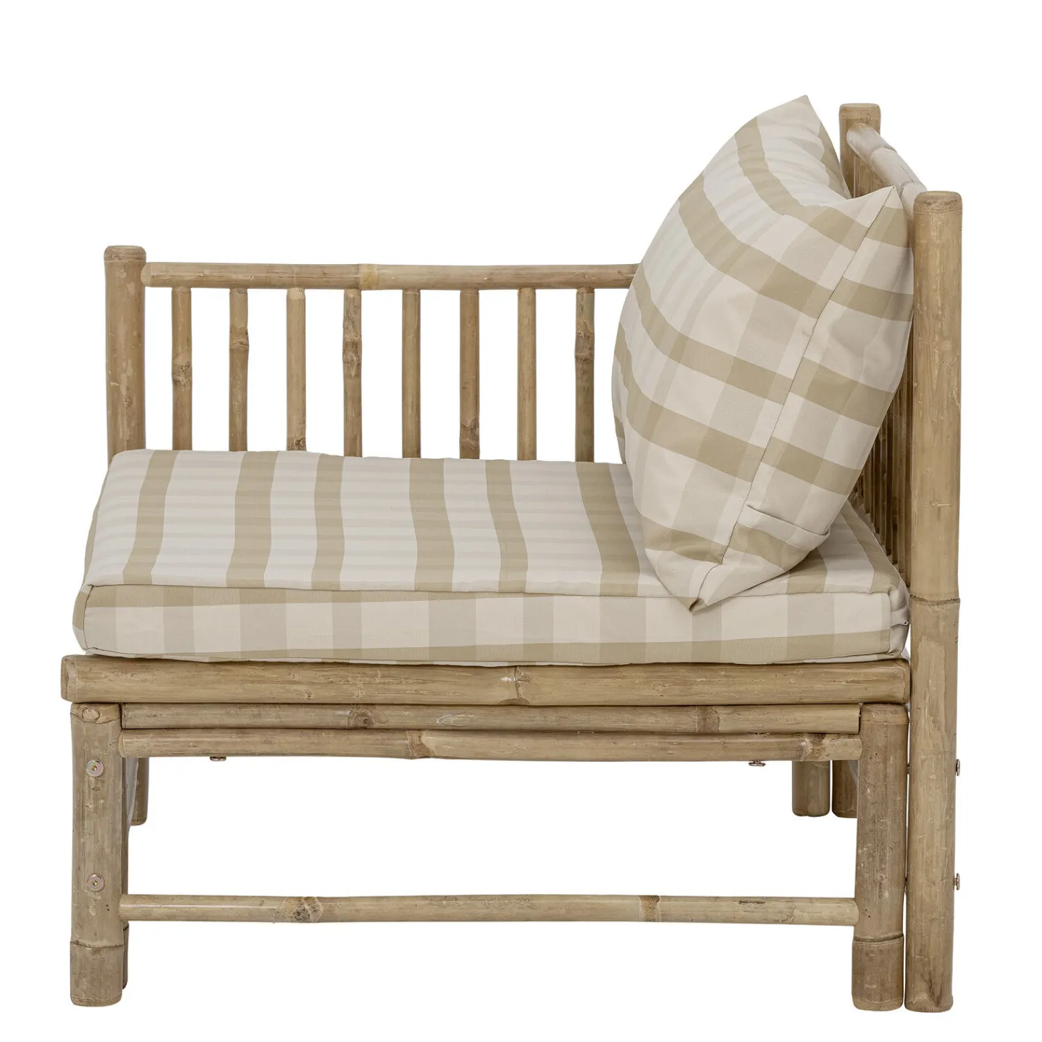 Korfu Module Sofa Left Corner fra Bloomingville er en del af Korfu-serien, hvor du kan mikse og matche modulerne og lave din egen udendørs sofa baseret på dine behov! Serien er lavet af bambus for at opnå den organiske, hyggelige og hjemlige følelse af naturmaterialet. Designet er fantastisk med et skandinavisk touch med puder lavet af polyester i smukke bløde farver. Modulerne er nemme at samle med velcro ved hvert modul. Lige perfekt til terrassen, have vores lidt orangeri.