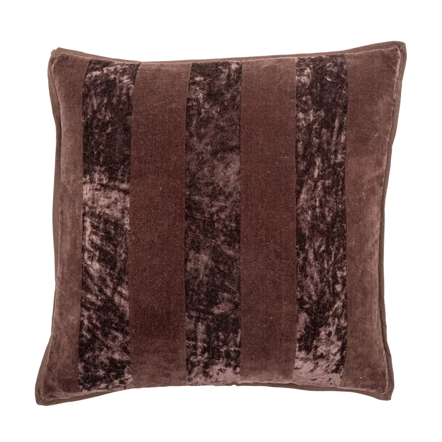Denne kvadratiske pude fra Bloomingville kombinerer fløjl og lærred i et stribet design, der skaber en spændende kontrast mellem matte og skinnende overflader. Den brune farvetone passer naturligt ind i forskellige indretningsstile.