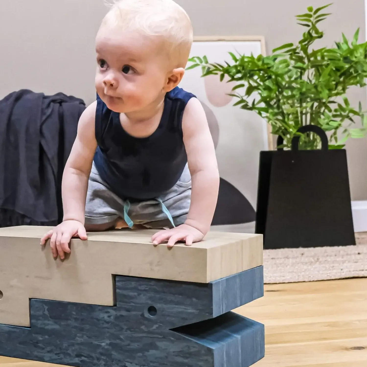 Dette trappeformede tumlemøbel giver dit barn flere anvendelsesmuligheder i én blok. Brug det som rutsjebane, første trappe for kravlende babyer eller som en stabil lille bænk. Materialet er 60 % grå, og designet er inspireret af naturens elementer med en neutral farve, der passer ind i hjemmet.