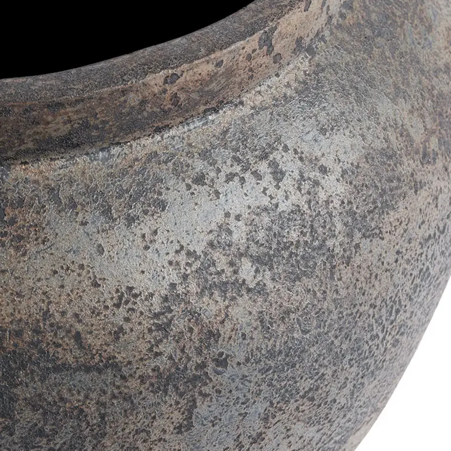 Memory krukken fra Muubs er inspireret af jordens overflader og de historier, naturen gemmer på. Overfladen skifter smukt mellem blålige og metalliske nuancer, alt efter hvordan lyset rammer. Hver krukke er støbt i terrakotta og efterfølgende hånddekoreret med glasur og brænding, hvilket giver et rustikt og unikt udtryk. Ingen krukker er helt ens – hver enkelt har sin egen sjæl og personlighed. Egnet til indendørs planter eller tørrede blomster