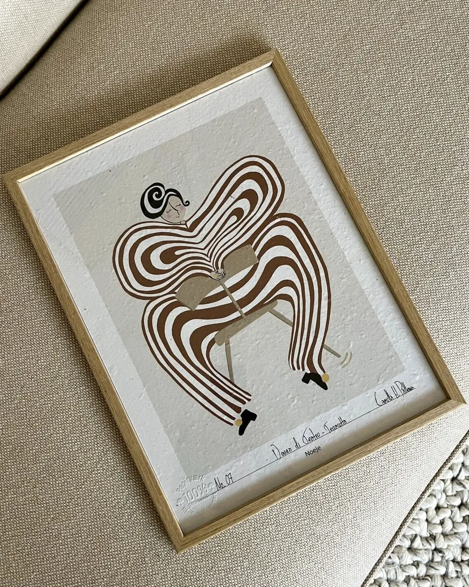 Donna di Teatro er vores første kollektion af unikke kunsttryk, tegnet af den danske designer Camilla Holm Pallesen. Hvert eksemplar er signeret og nummereret i hånden.Kollektionen er trykt på håndlavet papir fra Danmark, hvert kunsttryk vil derfor være helt sit eget, med mindre variationer i papirets udseende og tykkelse. Vores kunsttryk laves i samarbejde med den fynske virksomhed Papirværk, som fremstiller papiret i hånden af genanvendt papiraffald uden brug af lim, kemikalier eller træfibre.På den måde arbejder vi sammen om at skabe smukke kunsttryk af papirrester, og dermed mindske papirspild. Papiret får en lækker taktil overflade, med små nister der fortæller historien om et naturmateriale i cirkulation.