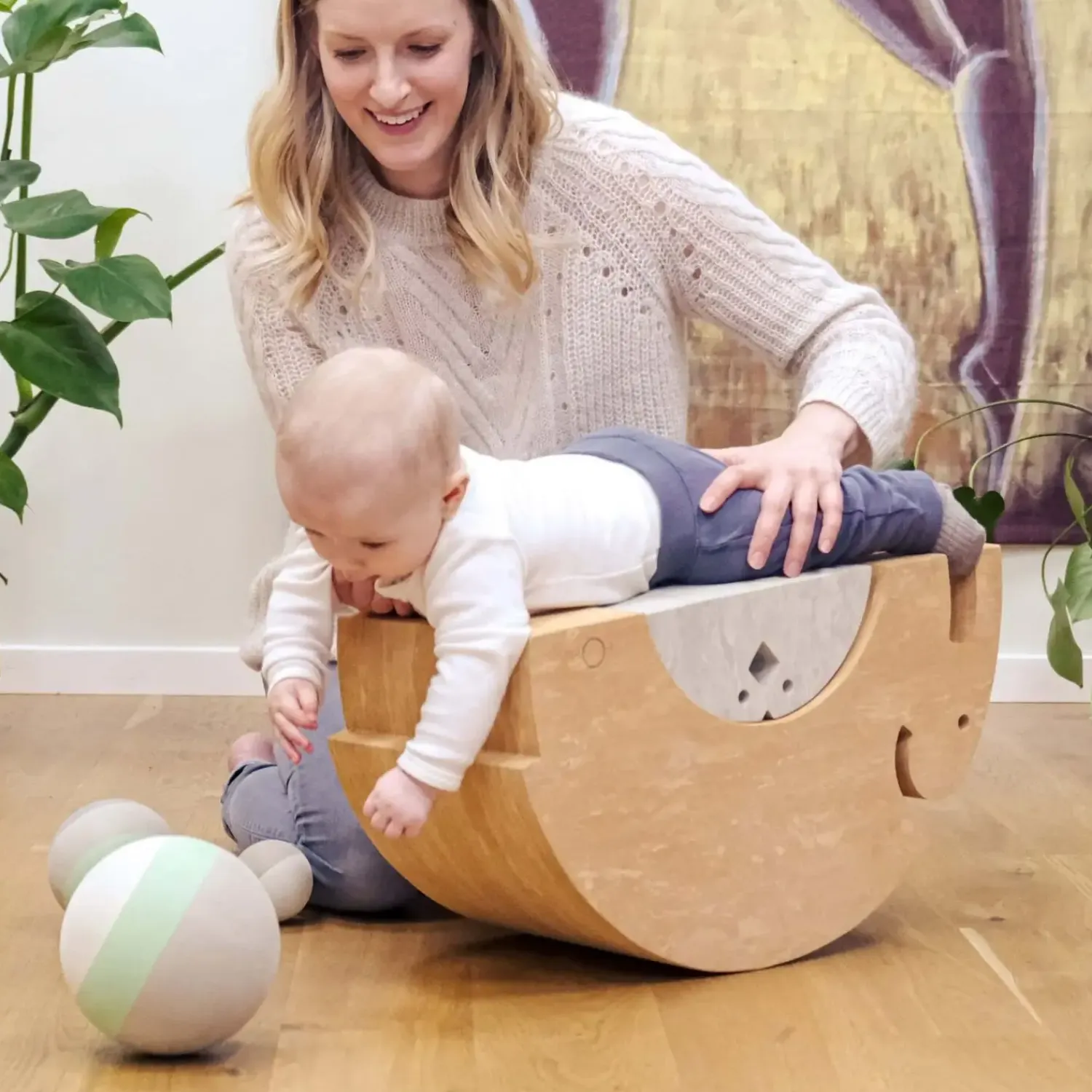 Alle børn (og deres forældre) bør starte livet med en bObles Kylling! Den bliver nemlig familiens bedste ven, når baby skal til at ligge på maven. Kyllings buede overfalde kan bruges som sliske, når baby skal styrke nakke og ryg. Den passer også ind i maven på den store bObles Elefant, som så kan bruges som vippe og styrke vestibulærsansen. En dejlig og rolig aktivitet med baby. Når barnet rammer tumlingealderen og er begyndt at sidde selv, er Kylling fantastisk til det kontrollerede vip. Tumlingen kan sidde på Kylling og vippe frem og tilbage samt fra side til side med begge fødder solidt plantet på gulvet. Og når barnet er blevet sikker på benene, kan bObles Kylling bruges til at vippe stående. Også på et ben. Psst… Det kan mor og far også, mens de laver mad eller ser TV. Vi bliver aldrig for gamle til at styrke balancen.bObles tumlemøbler i Marble Nature farver er en smuk og multifunktionel tilføjelse til dit hjem. Med inspiration fra naturens elementer, smelter de varme marmorfarver ind i indretningen og giver et både legende og afdæmpet udtryk til glæde for både børn og forældre. Ligesom bObles’ andre tumlemøbler, er Marble Nature-serien lavet i fast EVA-skum med en blød overlade, som inviterer til leg, fantasi og motorisk udfoldelse for baby, tumling og barn. Samtidig fungerer de fantastisk som interiør til hele hjemmet.