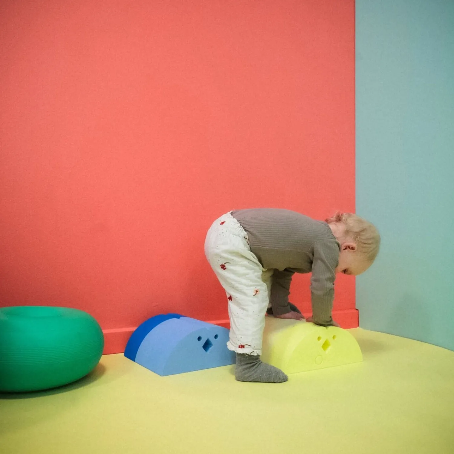Hvis dit barn skal udvikle sin balance og kropsbevidsthed, kan vippen bruges til at styrke vestibulærsansen. Den buede form giver en naturlig vippebevægelse, som små børn kan øve kontrolleret vip på. Når dit barn bliver mere sikkert på benene, kan det vippe stående og udfordre balancen yderligere.