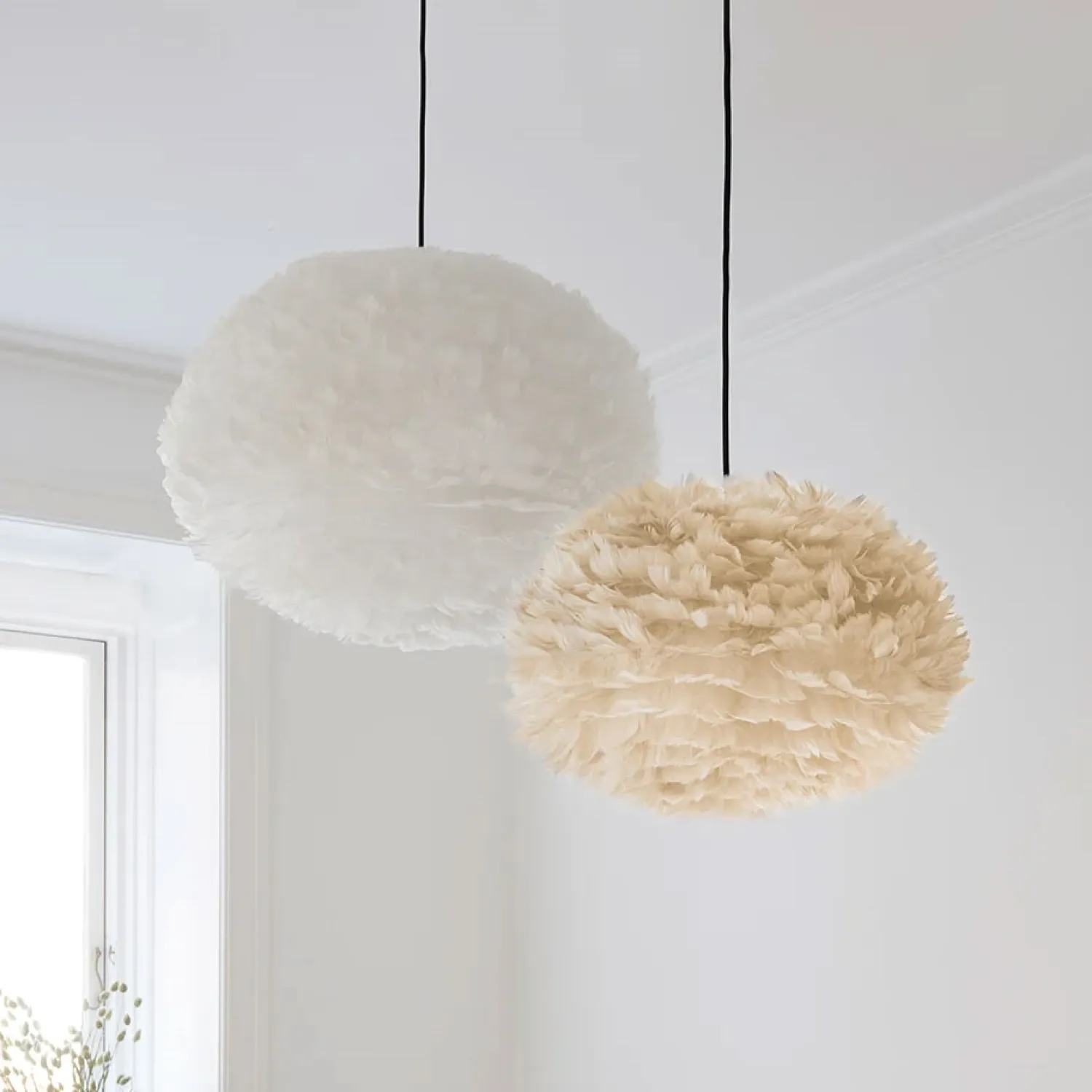 Fjerene på Eos lampen er ægte fjer og kun fra gæs der er døde i forbindelse med fødevareindustrien.