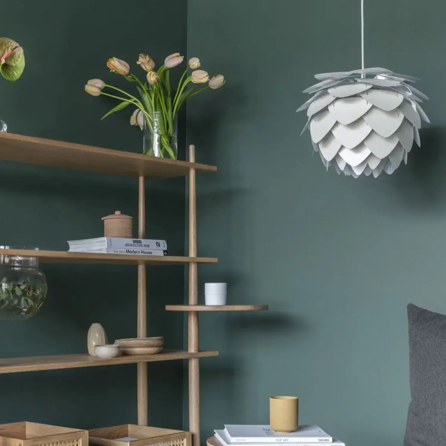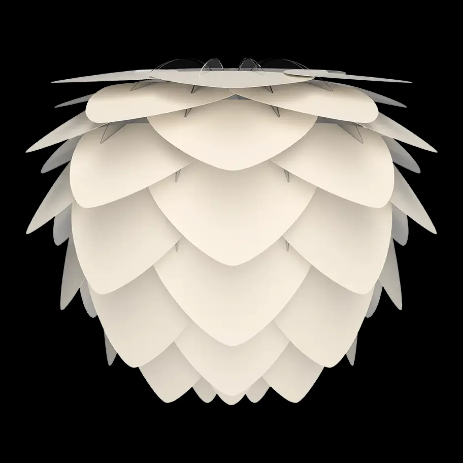 Den smukke kogle-formede Aluvia mini lampeskærm i Pearl white fra Umage er lavet med blade af hvid aluminium, som giver lampen et let og robust udtryk på samme tid. Lampeskærmen giver dig mange muligheder i din indretning. Hæng fx lampen over dit spisebord eller i entreen – husk at tilkøbe . Eller brug den som gulvlampe med en eller som bordlampe med en .