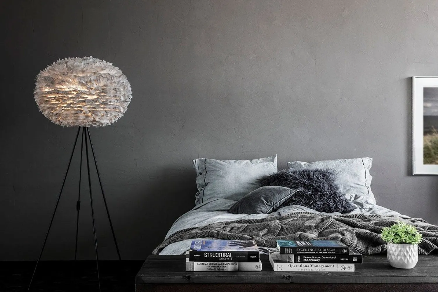Fjerene på Eos lampen er ægte fjer og kun fra gæs der er døde. Gæssene er slagtet i forbindelse med fødevareindustrien.