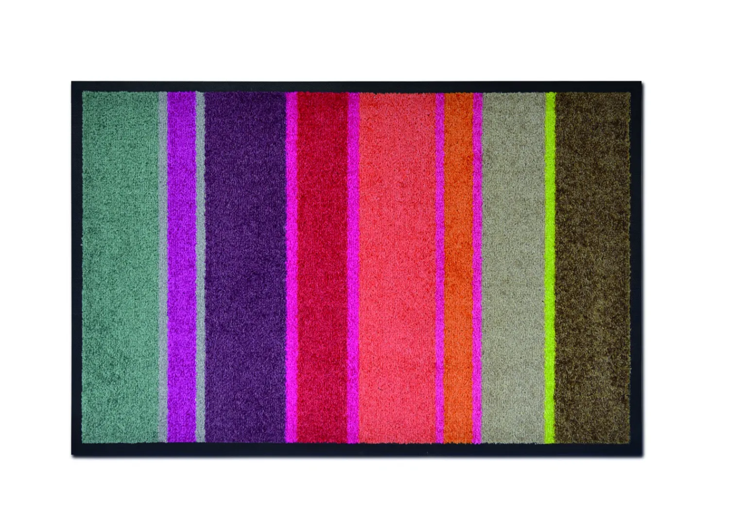 Tilføj farve og stil til din entré med den charmerende Largo dørmåtte fra Remember. Med sine livlige, vertikale striber i forskellige farver og en elegant sort kant tilfører denne måtte personlighed til din indgang. Den er designet til at skabe et førstehåndsindtryk, der afspejler din sans for stil og funktionalitet.