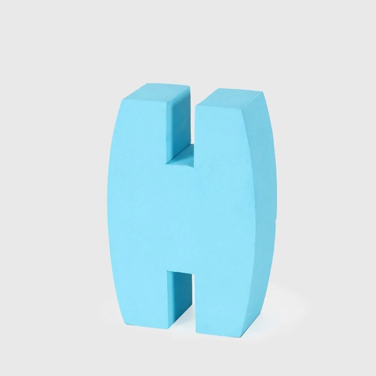 Dette tredimensionelle bogstav H er en del af bObles bogstaver, en samling designet til at kombinere leg med læring. Den lyseblå farve markerer, at H er en konsonant – vokalerne i samlingen er lilla. Formen gør det nemt for små hænder at gribe og placere bogstavet i forskellige kombinationer.