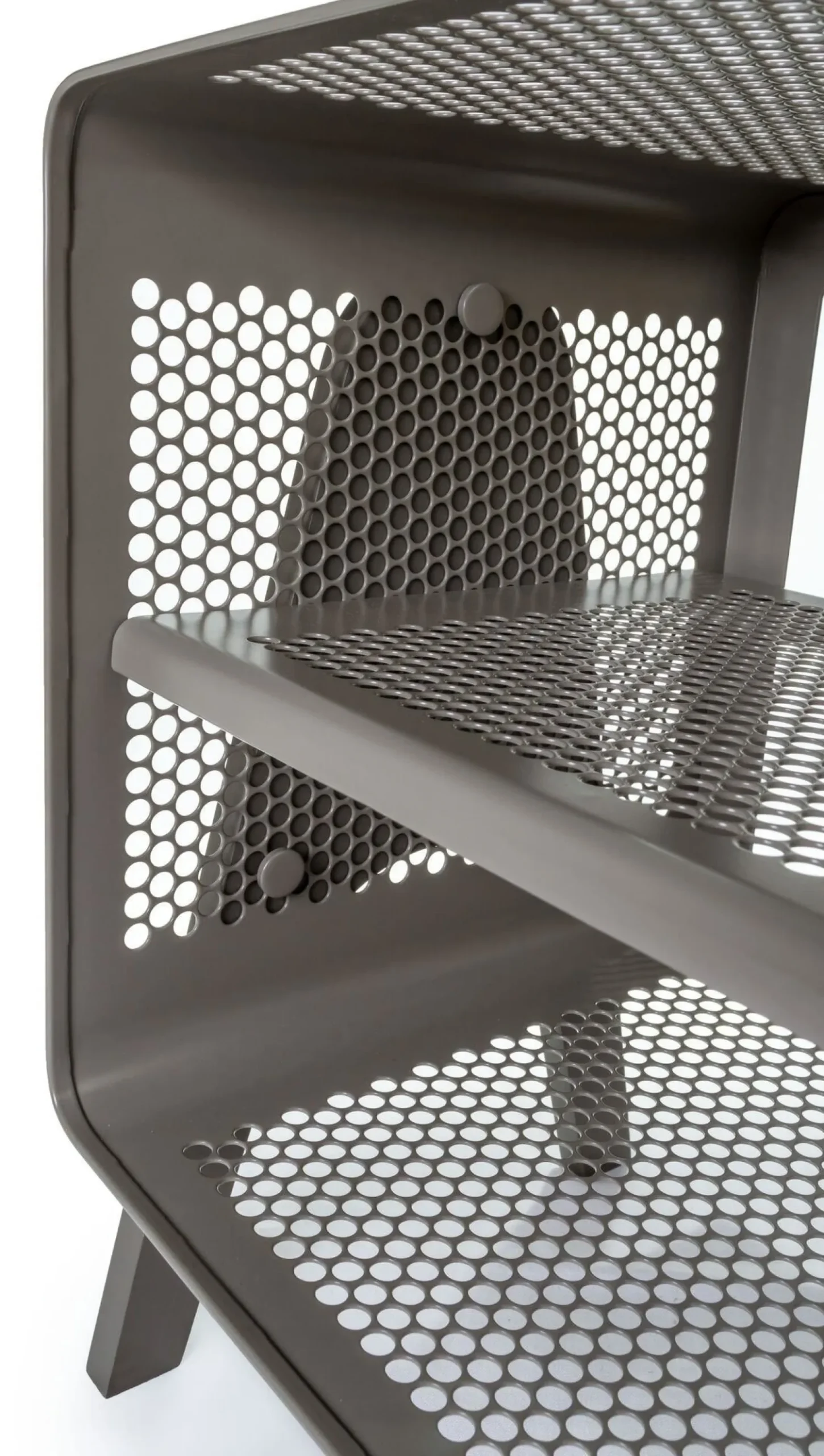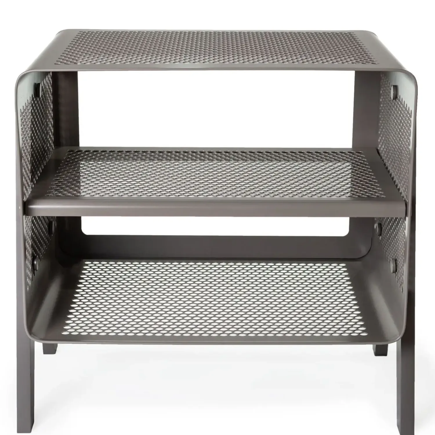 Tica Copenhagens lille gulvreol er en multifunktionel reol/møbel i perforeret metal, som er designet til sko, men den kan bruges til en lang række andre ting og sager. Hylden kan let flyttes, så du kan optimere pladsen på reolen.