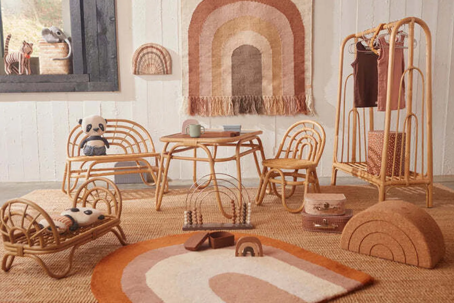 Kork Regnbuen er det perfekte interiør til børneværelset. Den er dekorativ med sit søde design, men også funktionel, da den kan fungere som en lille skammel til barnet, når det skal sidde under leg.