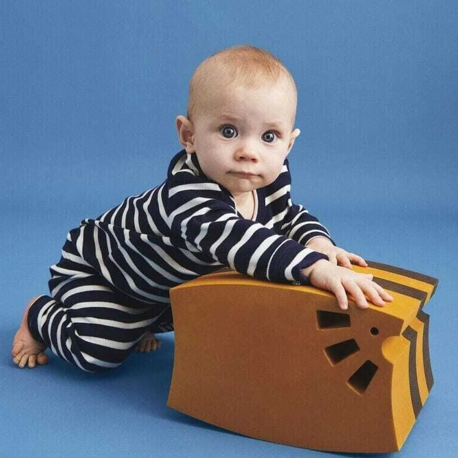 Denne kurvede legeform fra bObles er fremstillet af let EVA-skum, der giver en blød og sikker overflade til børns motoriske leg. Det stribede design i orange og brun samt de udskårne former på siden gør produktet visuelt tiltalende i hjemmet.