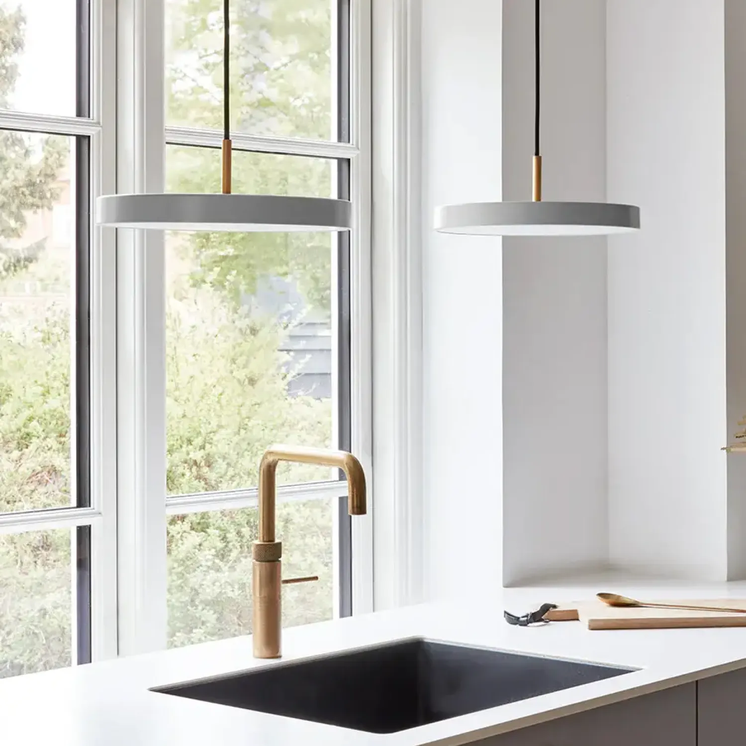 – Materiale: Stål, aluminium og akryl. Metalbaldakin. Indbygget LED-panel.