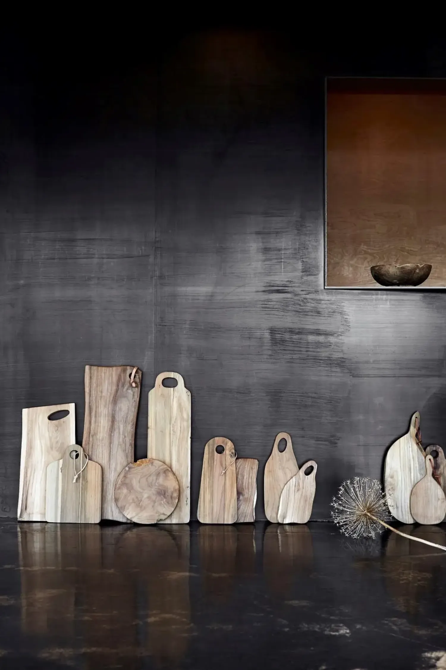 Louie M skærebrættet udmærker sig ved sin robuste teakrodskonstruktion, der giver hvert bræt et særpræget udtryk. Den naturlige form og det ovale håndtag sikrer både et autentisk udseende og praktisk funktionalitet i køkkenet.