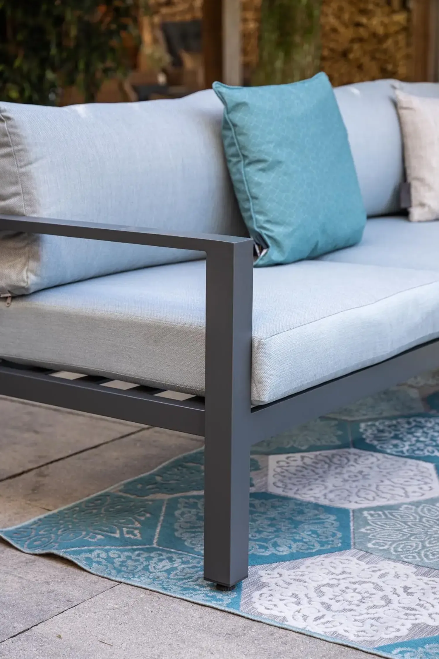 Aluminium er berømt for sin styrke og holdbarhed, hvilket gør det til et ideelt materiale til havemøbler. Det er også let, hvilket gør det nemt at flytte møblerne rundt efter behov. Den beskyttende pulverlakering forhindrer skader og korrosion, hvilket sikrer, at loungesættet forbliver i god stand i mange år.