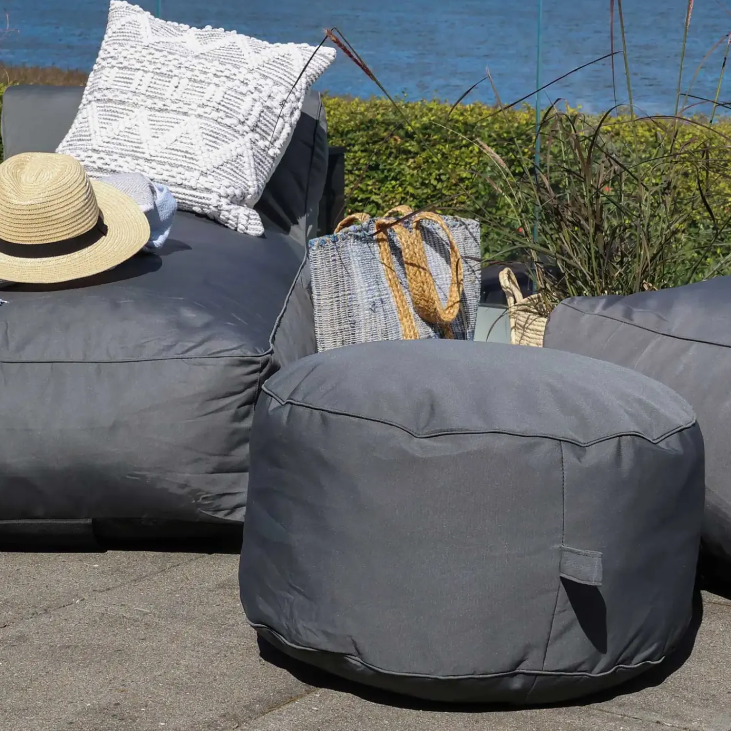 Hvis du har brug for møbler til sommerhuset, er denne puf praktisk. Den er nem at transportere mellem boliger og tåler at stå ude i al slags vejr. Transporttasken gør opbevaring enkel.