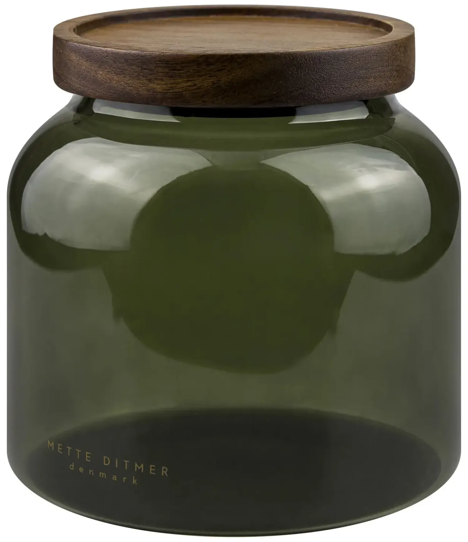 Den lille LUNA-krukke i dybt grønt glas kombinerer funktionalitet og æstetik i et tidløst design. Den organiske, buttede form og låget i mørkolieret akacietræ giver et elegant udtryk, mens silikoneringen sikrer en lufttæt lukning – perfekt til opbevaring af madvarer som pasta, rosiner og nødder. Dens størrelse gør den også ideel til badeværelset til vatrondeller, vatpinde eller håraccessories.Glassets grønne farve skaber en let transparens og et blødt og dæmpet look. Kombinér med andre størrelser og farver i LUNA-serien for et sammenhængende eller legende look.