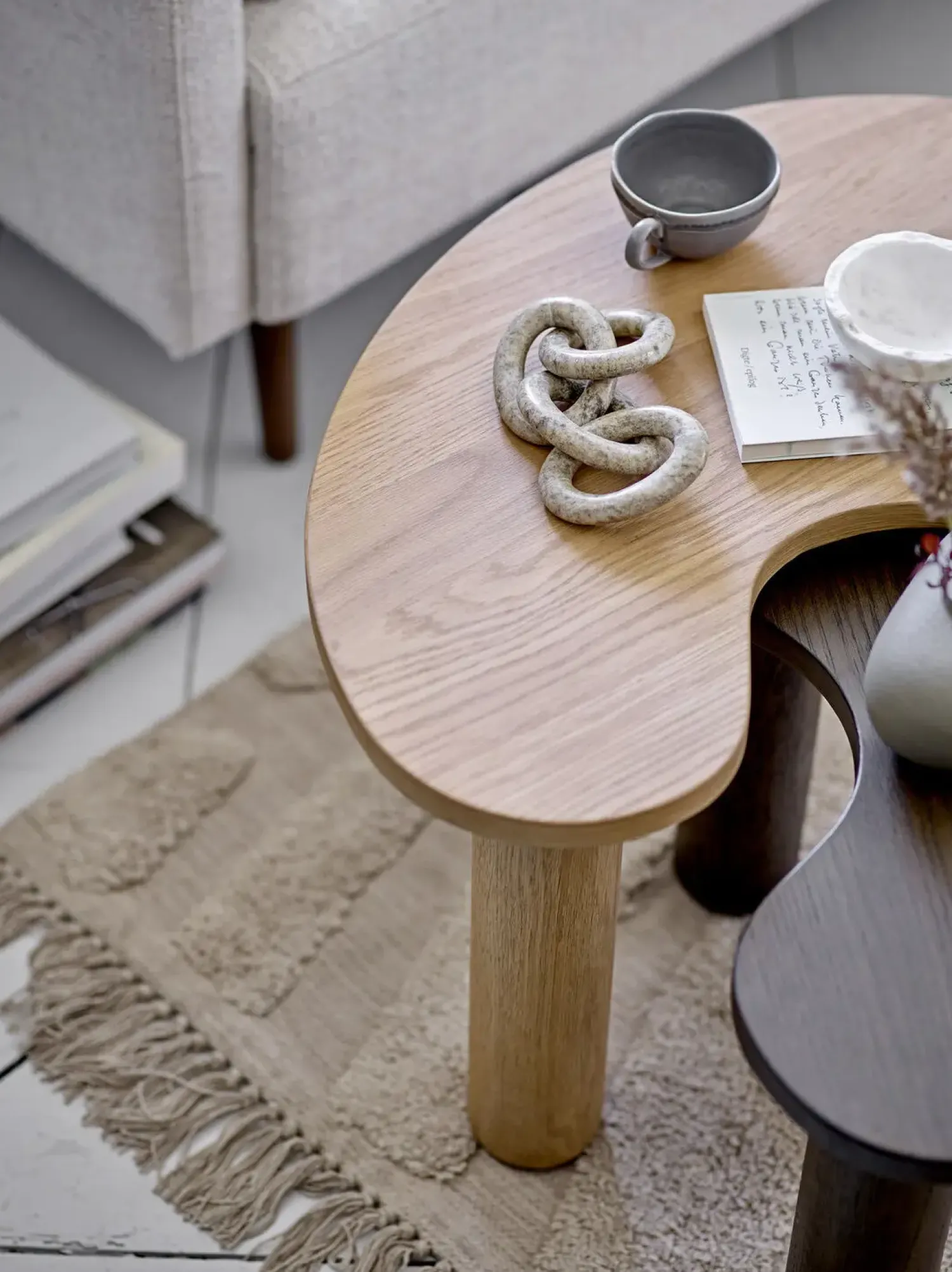Luppa sofabordet er lavet af gummitræ med en glat, mørkebrun overflade. Bordet er lavet i en rolig organisk form, der pynter op i stuen. Bland med det lette Luppa sofabord, for et perfekt match.