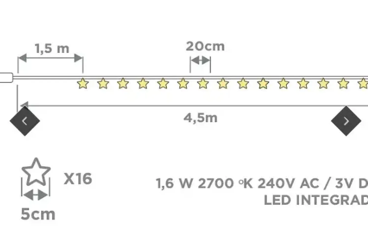 Ønsker du at skabe stemning både inde og ude? Denne lyskæde fra New Garden har 16 stjerneformede LED-pærer, der spreder et varmt lys på 2700 Kelvin i dit hjem og din have.