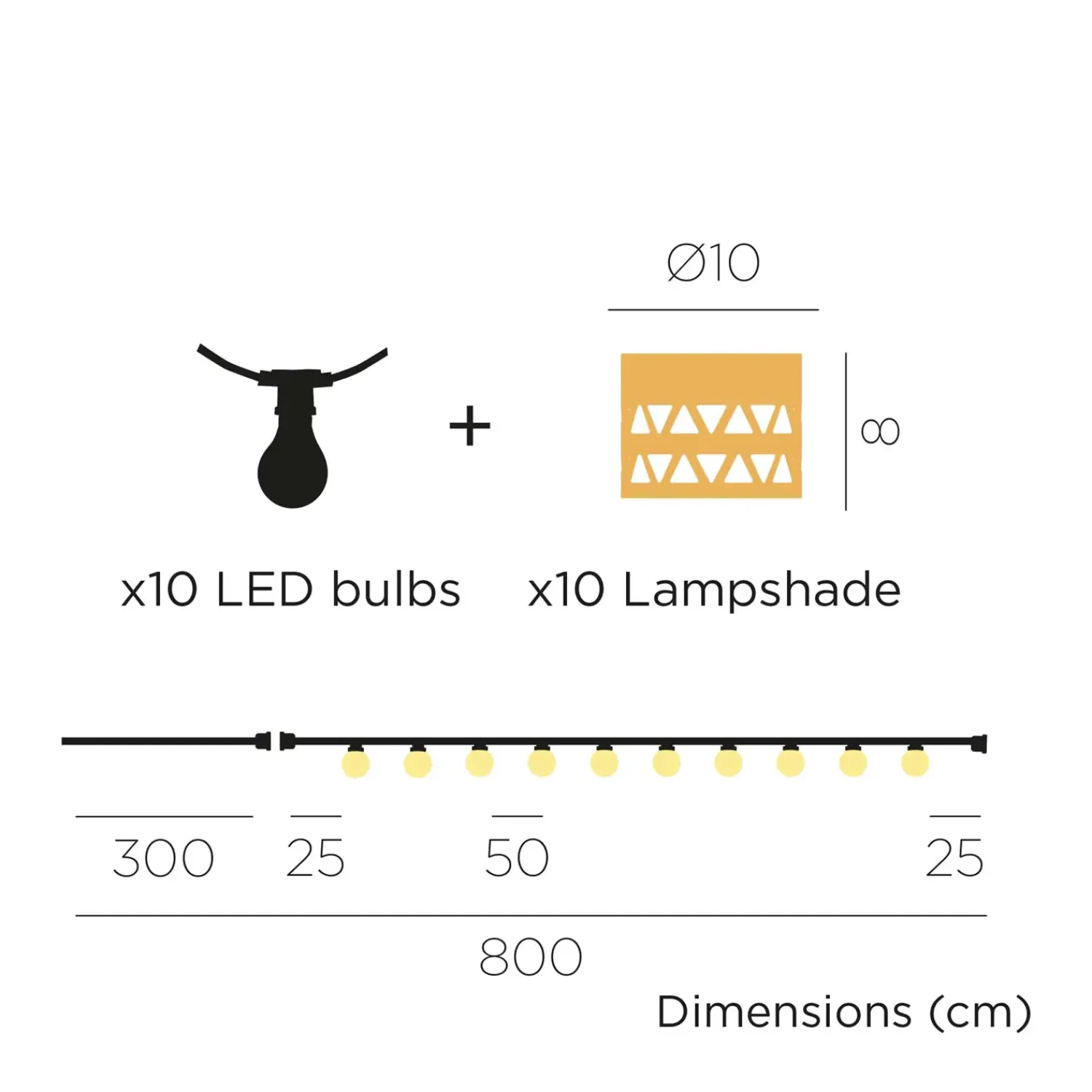Alba-guirlanden er fremstillet af jute og naturfibre, hvilket giver den et rustikt udseende. De udskiftelige pærer gør det muligt at vedligeholde lyskæden over tid. Med en længde på 8 meter og en lysstyrke på 35 lumen er lyskæden egnet til at oplyse mindre udendørs områder. Den varme hvide lysfarve på 2700 K skaber en behagelig belysning. New Garden – lyskæde med solceller – Alba er designet til at tilbyde en kombination af æstetik og funktionalitet til udendørs brug. Den er velegnet til brug i haver, på terrasser eller i andre udendørs områder, hvor man ønsker at tilføje belysning uden brug af traditionel elektrisk installation.