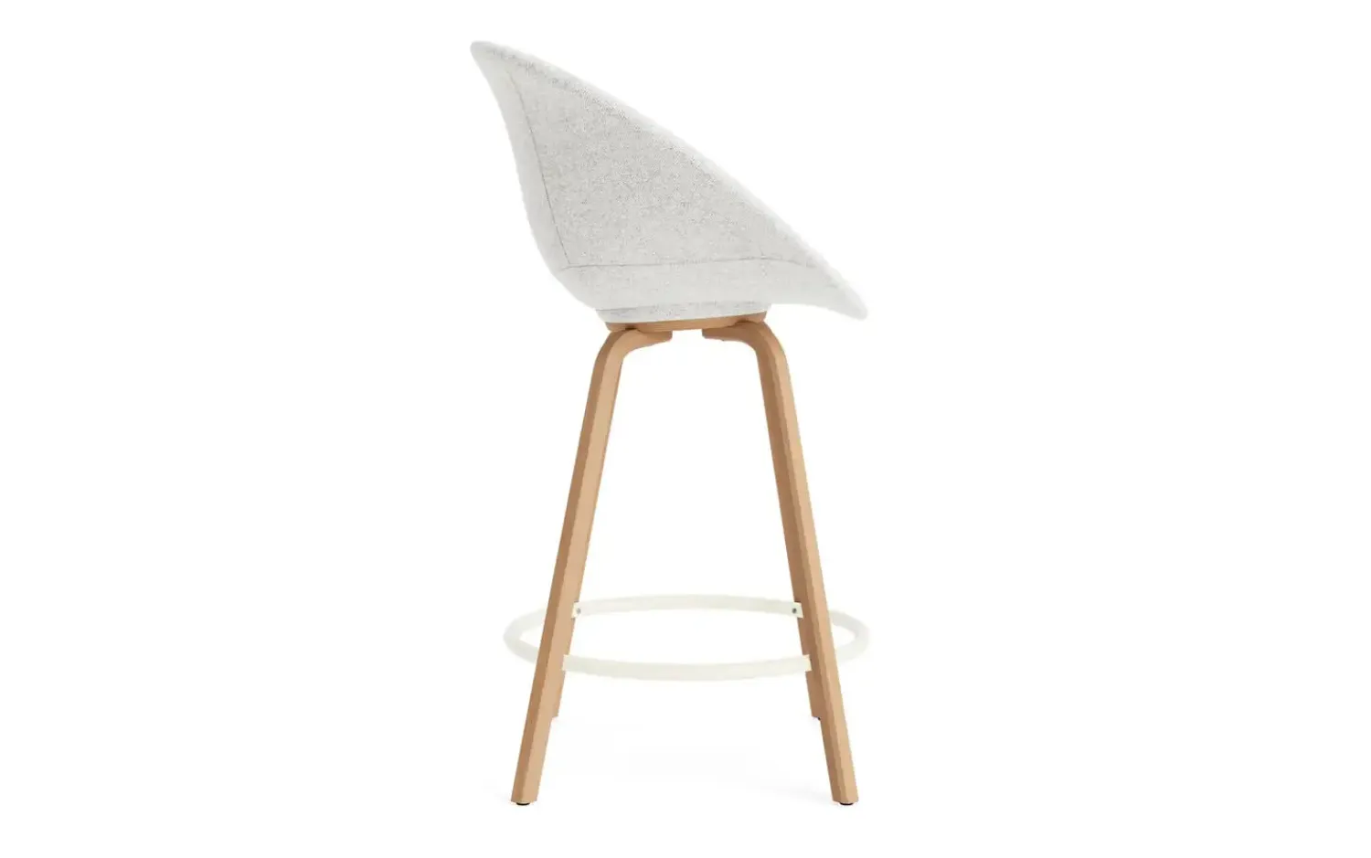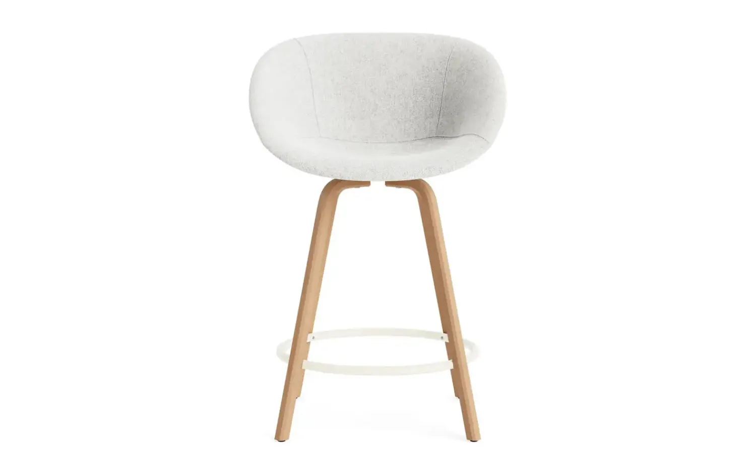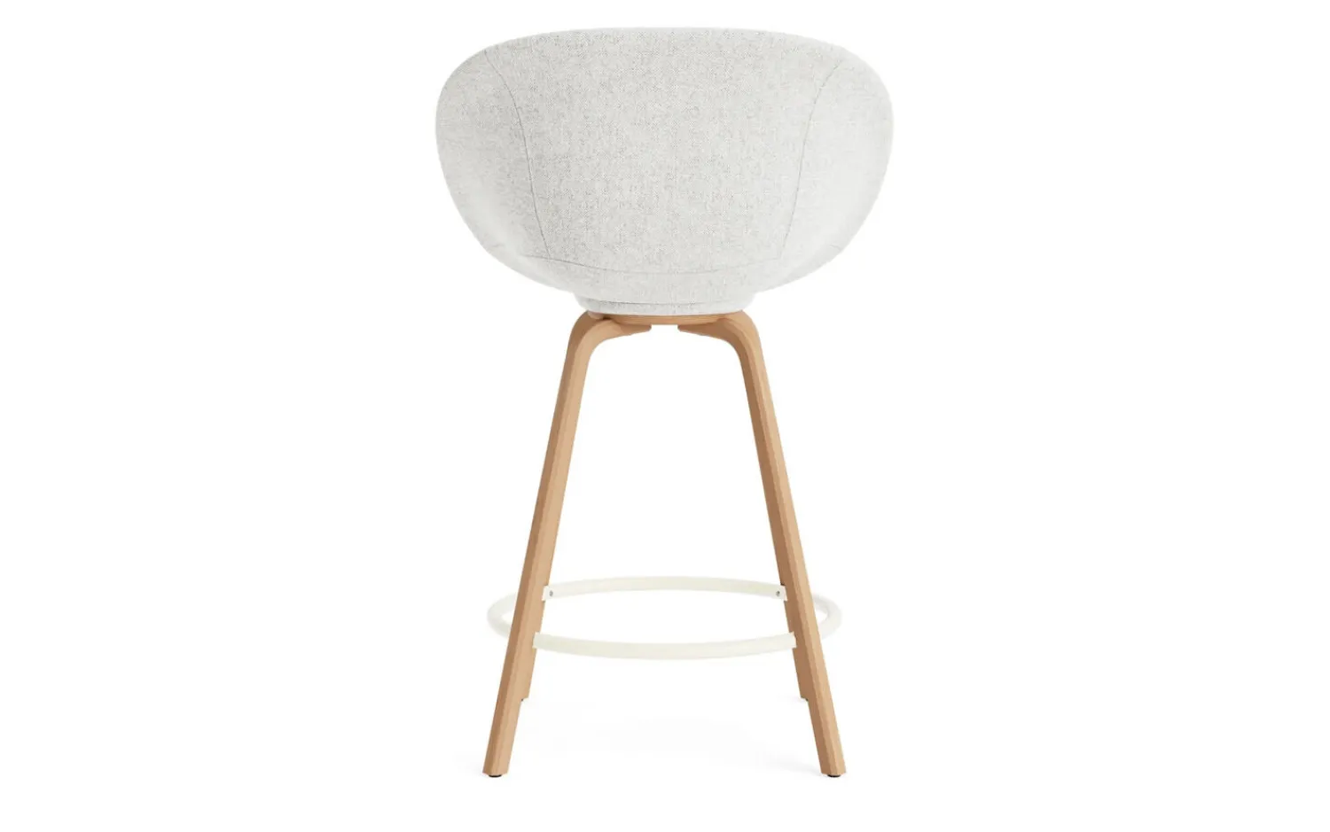 Ved køkkenøen bliver Mat Bar Armchair et naturligt samlingspunkt. Den skålformede polstring og fodstøtten i pulverlakeret stål gør det komfortabelt at sidde længe. Stolen måler 100 cm i højden og 65 cm i bredden.