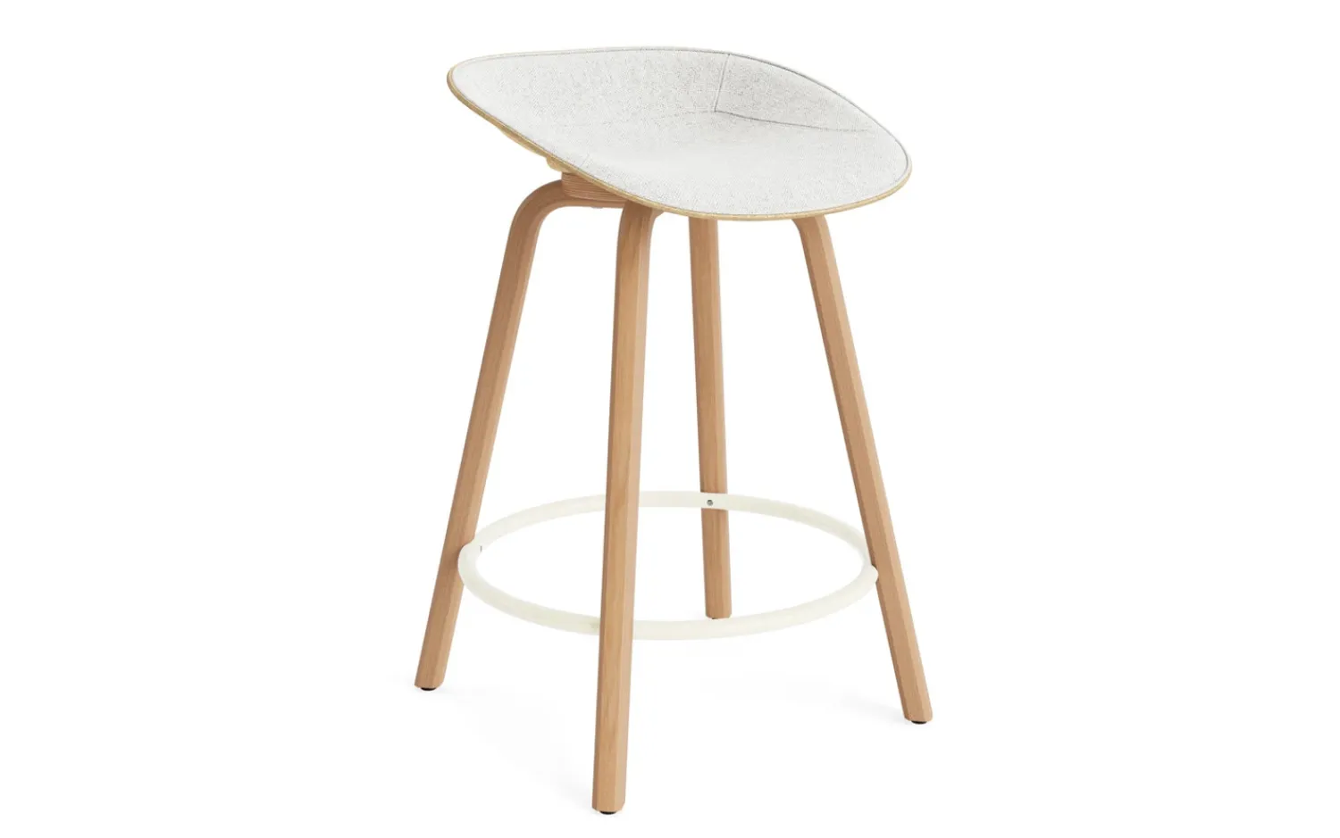 Barstolen kombinerer hampfibre og genanvendeligt bindemiddel i skallen med FSC™-certificeret bøgekrydsfiner i benene. Materialevalget giver en holdbar og miljøvenlig stol til daglig brug.