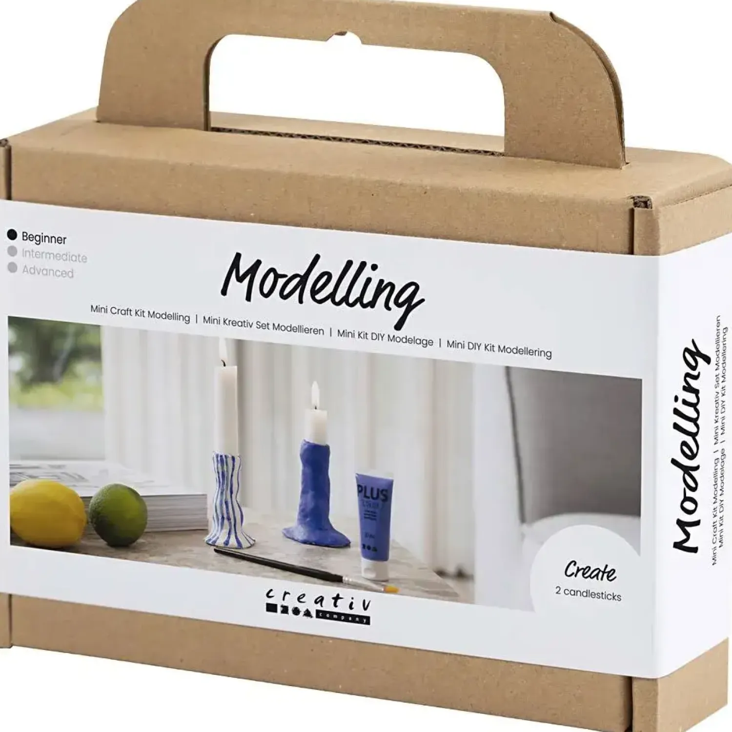 Med dette kit kan du lave unikke lysestager til hjemmet. Indeholder alle de materialer du skal bruge, og al den vejledning du behøver.Mangler du unikt pynt til dit hjem, så er dette kit perfekt. Med selvhærdende ler kan du skabe to lysestager i bløde, organiske former – og du kan gøre dem ekstra fine ved at male flotte, blå mønstre på. Det hyggelige DIY-projekt er et, du sagtens kan lave derhjemme – og det er oplagt projekt, hvis du elsker personligt home decor.Indhold: Maling, pensel, selvhærdende ler, lysmanchetter