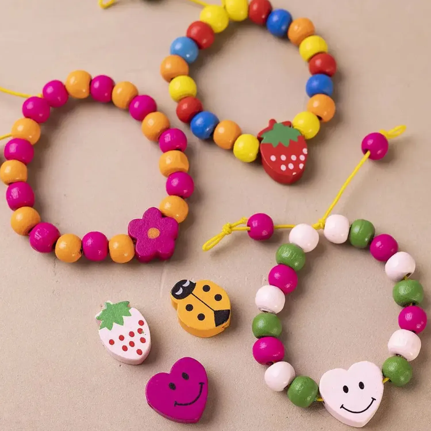 Indhold: Træperler, elastiksnor