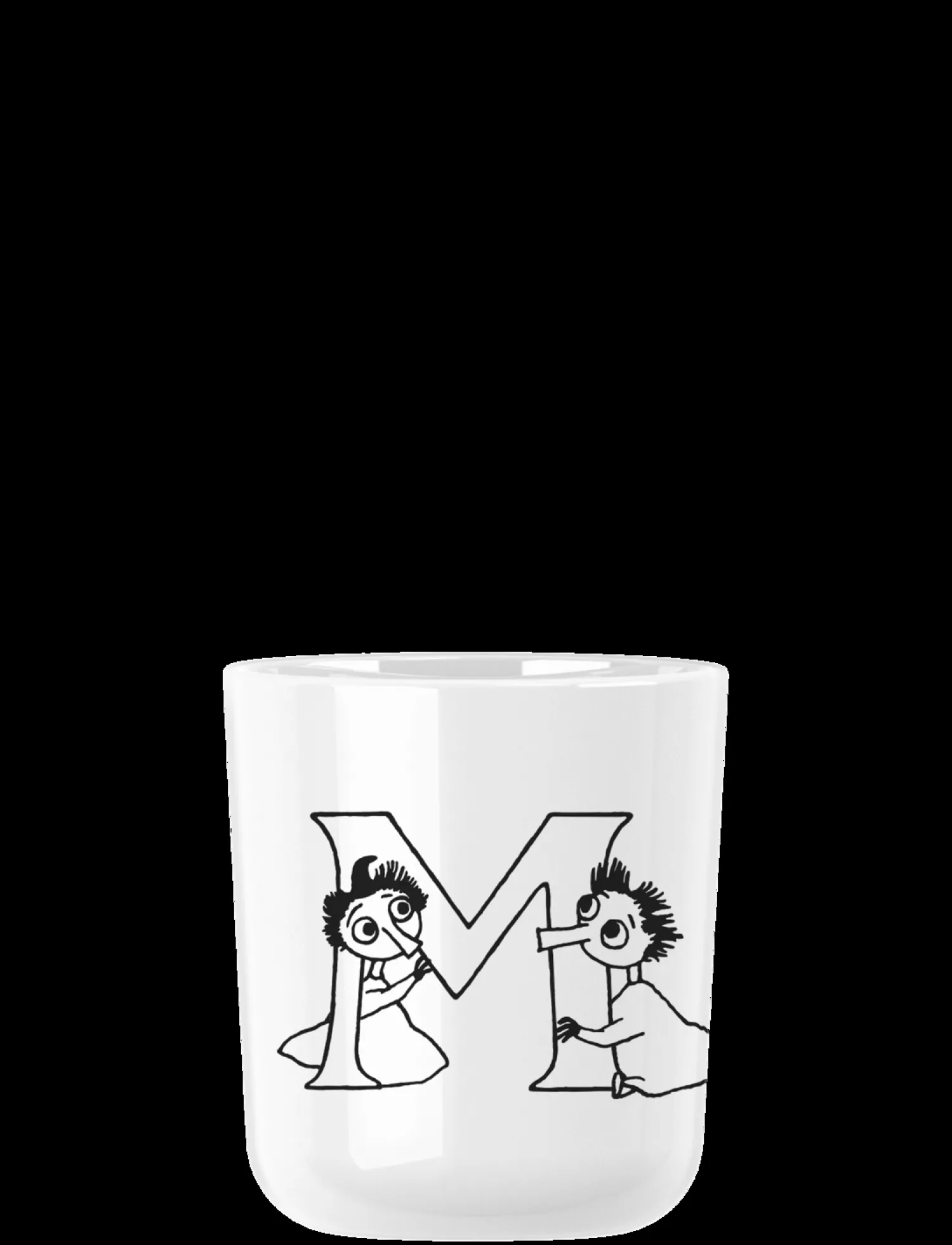 At kunne udtrykke sig er en af de vigtigste ting i verden: det giver mulighed for at kommunikere håb og drømme, forholde sig til andre, engagere sig i vor tids store spørgsmål og skabe forandringer. Alfabetet, der er designet til Moomin ABC kollektionen, er alle baseret på Tove Janssons originale bogstaver. Moomin ABC koppen kommer i 26 versioner med hvert sit bogstav fra A til Z, samt en af de sjove figurer fra Mumiernes verden, afbilledet på siden af koppen. Koppen kan indeholde 0,2 l og er lavet i ABS plast, der er særdeles robust. Der kan desuden tilkøbes en drikketud til koppen til de mindste børn i farverne ’salmon’ eller ’turquoise’. Både kop og drikketud tåler opvaskemaskine og er naturligvis fri for BPA, phtalater og andre skadelige stoffer.