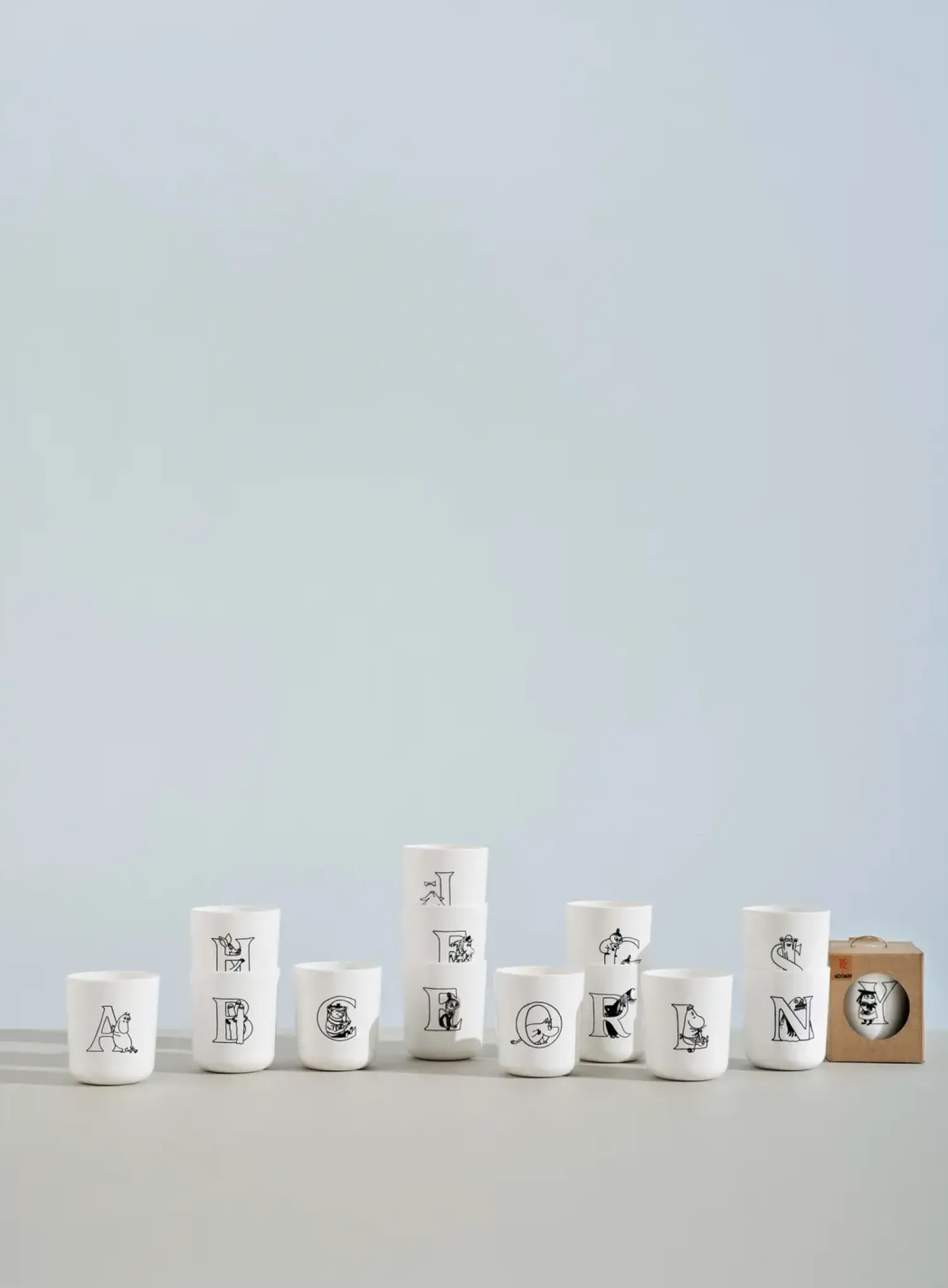 At kunne udtrykke sig er en af de vigtigste ting i verden: det giver mulighed for at kommunikere håb og drømme, forholde sig til andre, engagere sig i vor tids store spørgsmål og skabe forandringer. Alfabetet, der er designet til Moomin ABC kollektionen, er alle baseret på Tove Janssons originale bogstaver. Moomin ABC koppen kommer i 26 versioner med hvert sit bogstav fra A til Z, samt en af de sjove figurer fra Mumiernes verden, afbilledet på siden af koppen. Koppen kan indeholde 0,2 l og er lavet i ABS plast, der er særdeles robust. Der kan desuden tilkøbes en drikketud til koppen til de mindste børn i farverne ’salmon’ eller ’turquoise’. Både kop og drikketud tåler opvaskemaskine og er naturligvis fri for BPA, phtalater og andre skadelige stoffer.