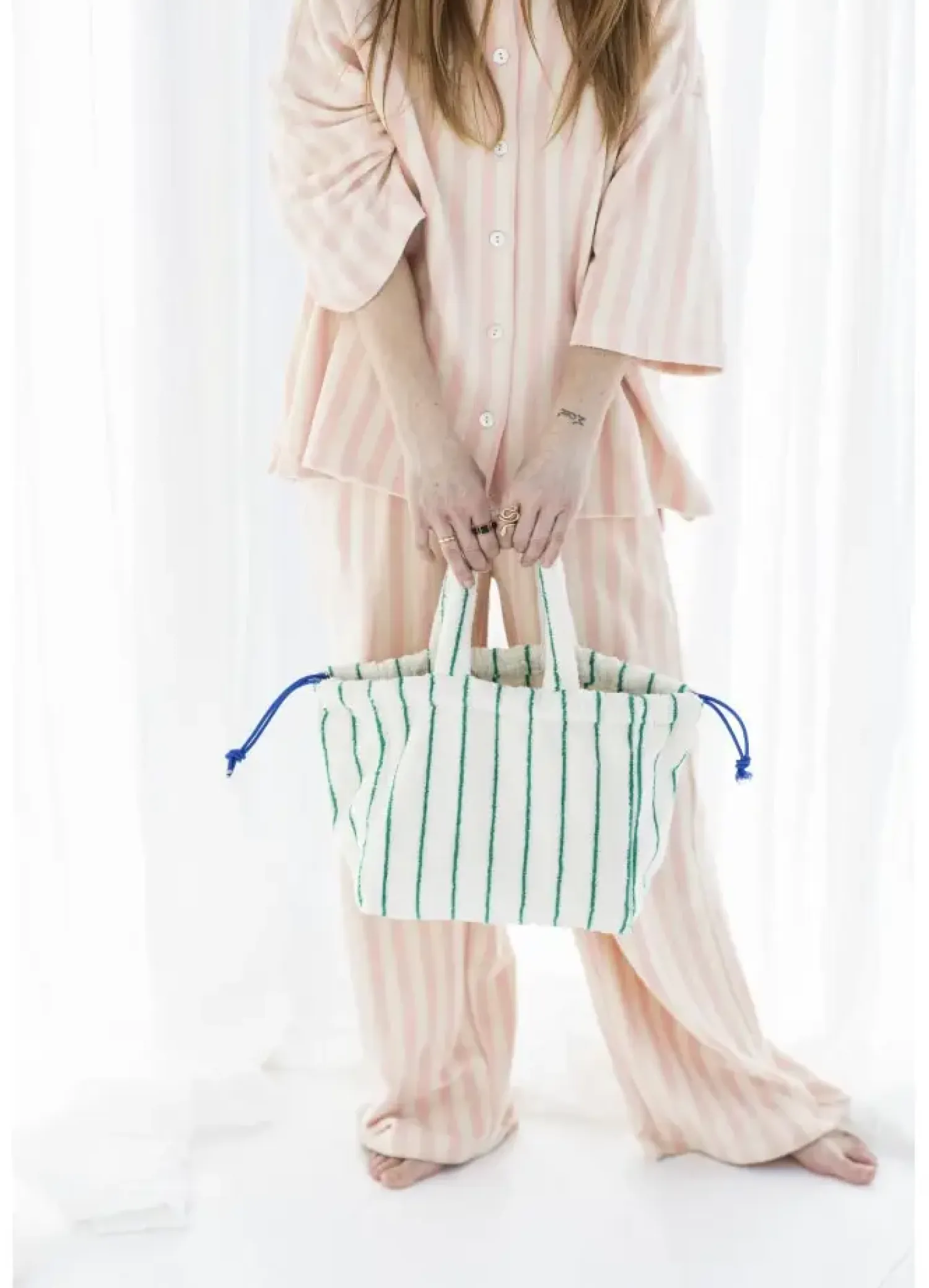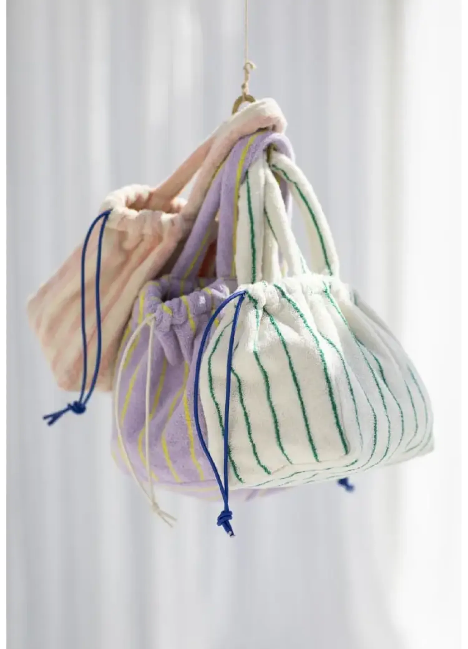 Naram Håndtasken er fremstillet af blødt frottéstof, der giver en behagelig fornemmelse. Materialet sikrer ikke kun komfort, men også holdbarhed i hverdagens brug. Tasken er OEKO-TEX®-certificeret, hvilket garanterer, at materialet lever op til strenge standarder for miljøvenlighed og sikkerhed. Den praktiske snørelukning gør det nemt at lukke og åbne tasken, hvilket er praktisk, når du er på farten.