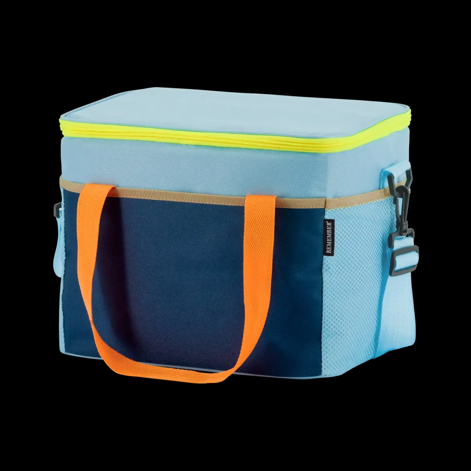 Den gule lynlås bidrager til taskens isoleringsevne og hjælper med at holde indholdet køligt, mens den samtidig giver nem adgang til dine forfriskninger. Uanset om du er på stranden, i parken eller på en længere biltur, er Remember – Nick køletaske den ideelle løsning til at holde dine drikkevarer og mad friske. Med en rummelig kapacitet på 16 liter kan du nemt medbringe alt, hvad du behøver til en dag ude. Denne alsidige køletaske er ikke kun praktisk, men også stilfuld med sin blå og orange farvekombination, der gør den til et attraktivt tilbehør til alle dine sommeraktiviteter.