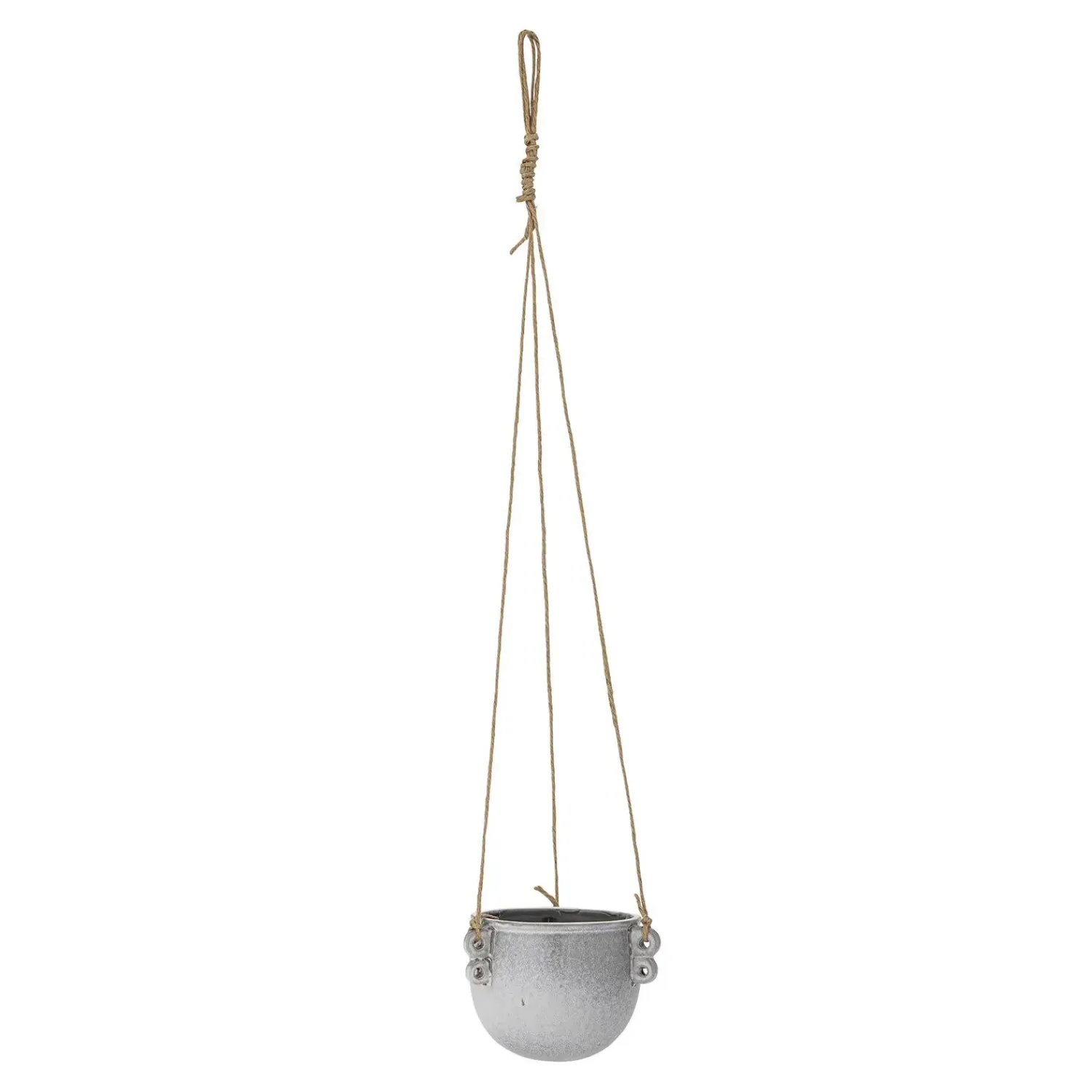 Nilou urtepotteskjuleren er designet til at hænge frit med tre snore fastgjort til kanten, hvilket sikrer en stabil og sikker ophængning af dine planter. Dette funktionelle design giver dig frihed til at eksperimentere med forskellige højder og positioner i dit rum. Du kan nemt justere længden på snorene for at tilpasse urtepotteskjulerens placering efter behov. Den grå farve i stentøj er neutral og passer godt ind i mange forskellige indretningsstile.