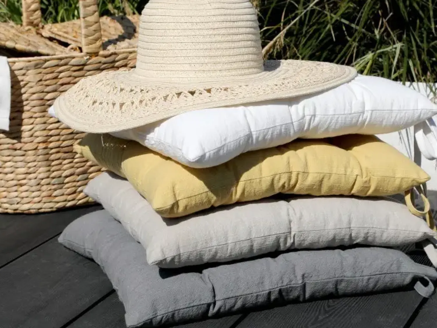 Super fin hynde fra Chic Antique. Hynden har bindebånd så du kan sikre den til din havestol. Hynden gør, at du kan sidde behageligt på havestolen og at du uden problemer kan sidde og grille mens du nyder solen på terrassen i flere timer.