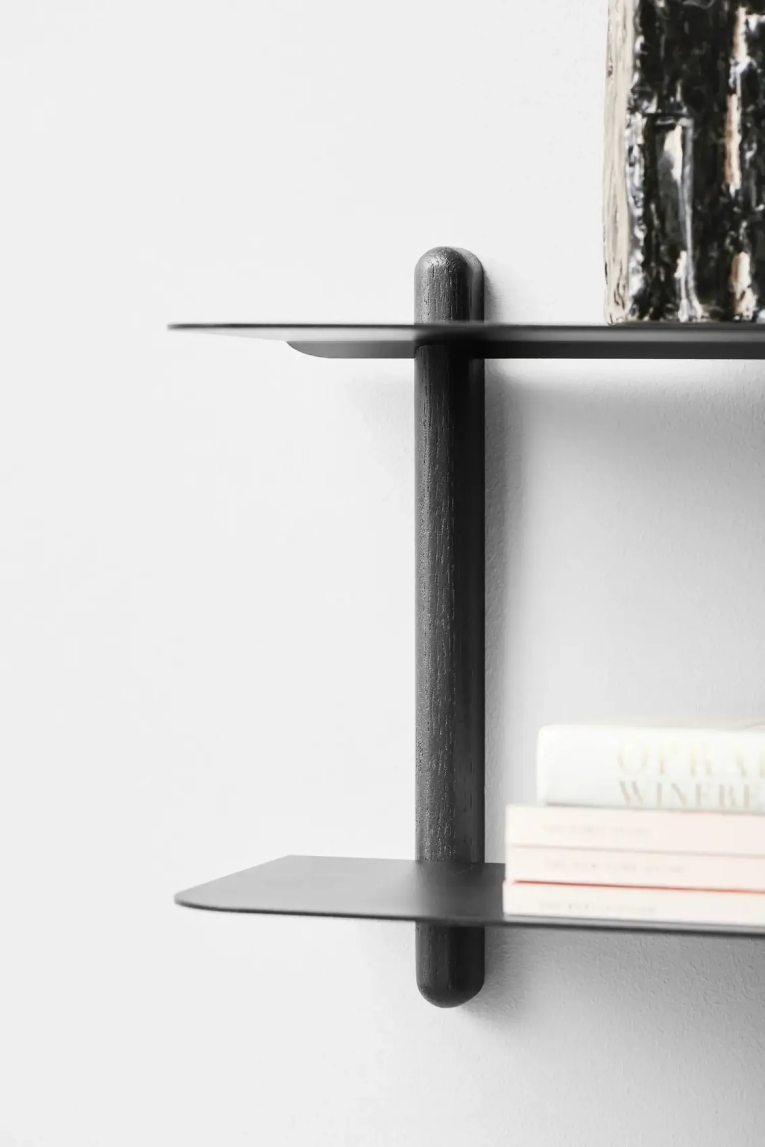 NIVO A hylden kan med sit monokrome og mørke udtryk hænge skarpt og hvor som helst i dit hjem. Hylden egner sig godt til små pynte ting, men kan også snildt anvendes ude i køkkenet, evt til krydderier eller andet som du vil har stående fremme.