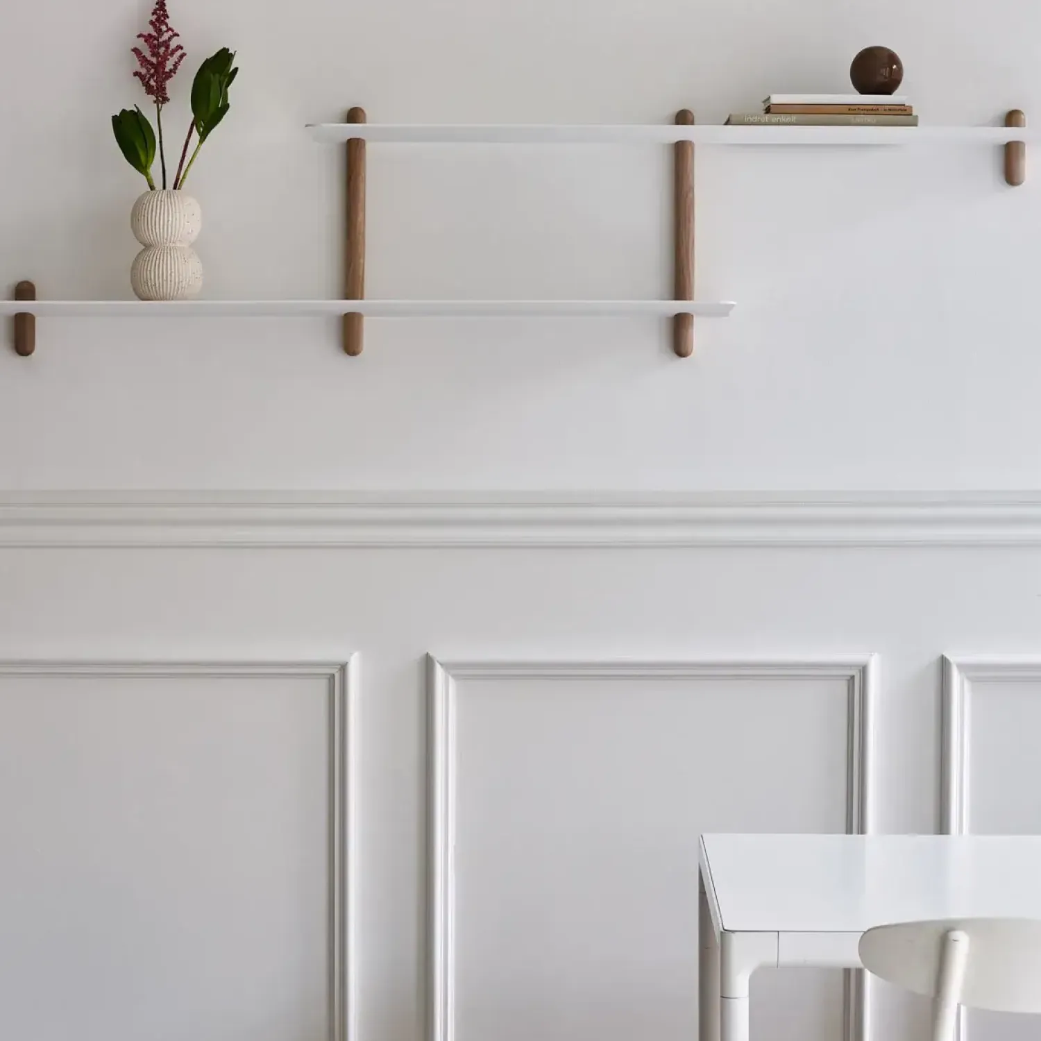 Super fin minimalistisk NIVO hylde fra Gejst, der har et rent og fokuseret design uden overflødige elementer. Der er ingen synlige skruer, hvilket giver hylden et elegant udtryk. Hylden er smuk i alle hjemmets rum.