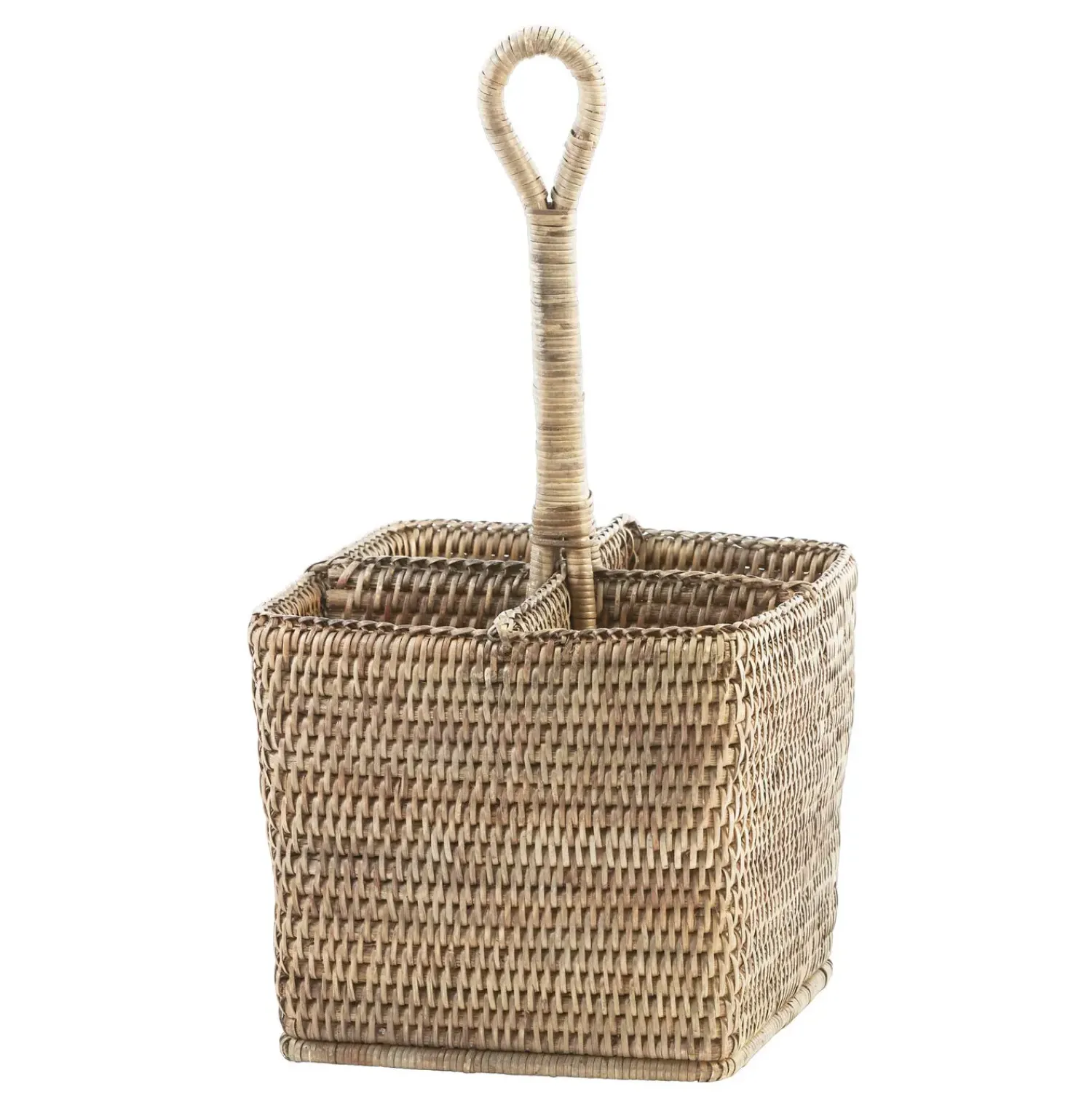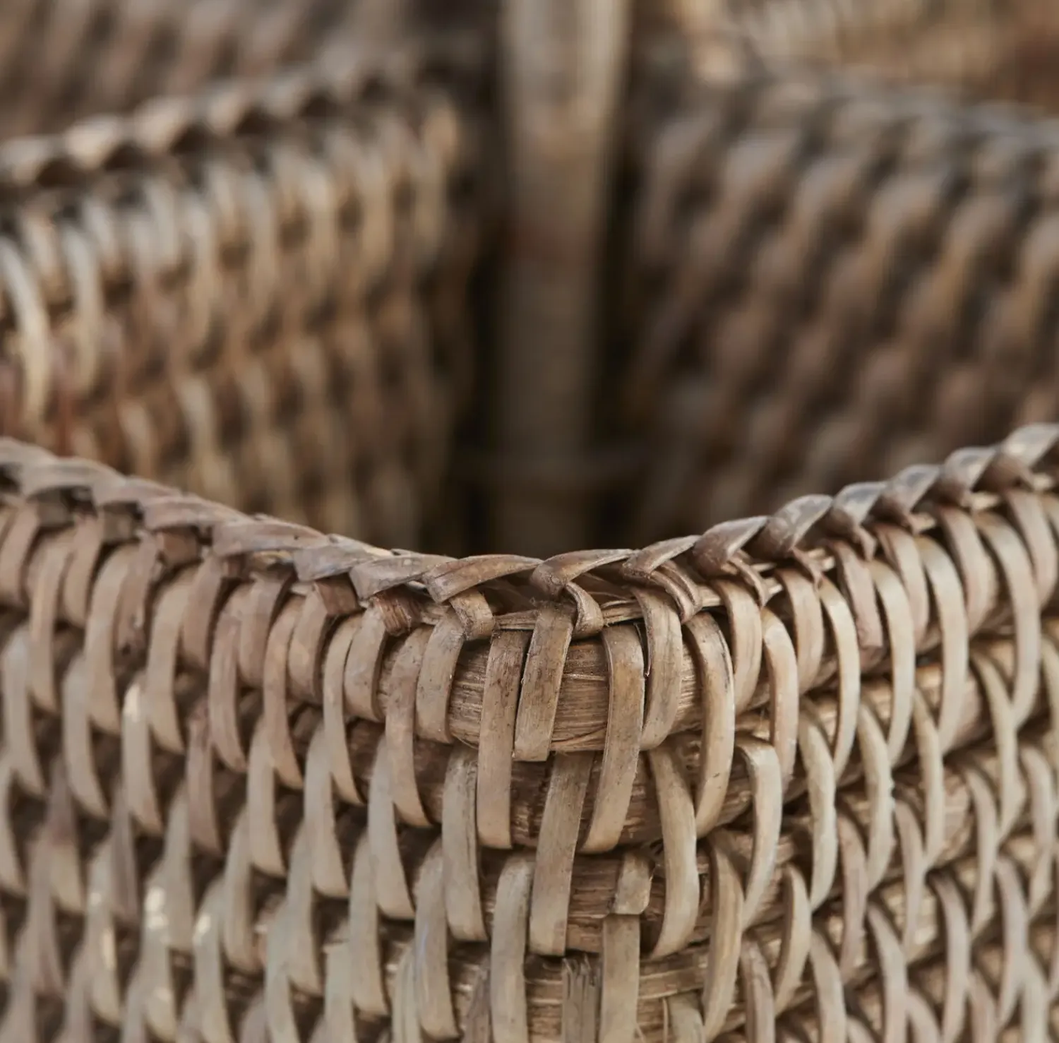 Håndflettet køkkengrejholder af rattan i høj kvalitet fra vores Norah serie. Kendetegnet ved denne serie er brugen af naturmaterialer som f.eks. bambus og rattan. Det er begge planter, der vokser hurtigt, er nemme at genplante og er et stærkt materiale til boliginteriør. Materialerne flettes og formes med stor præcision og passion – et produkt fra Norah serien kan tage alt fra 1 dag til en hel uge at færdiggøre.