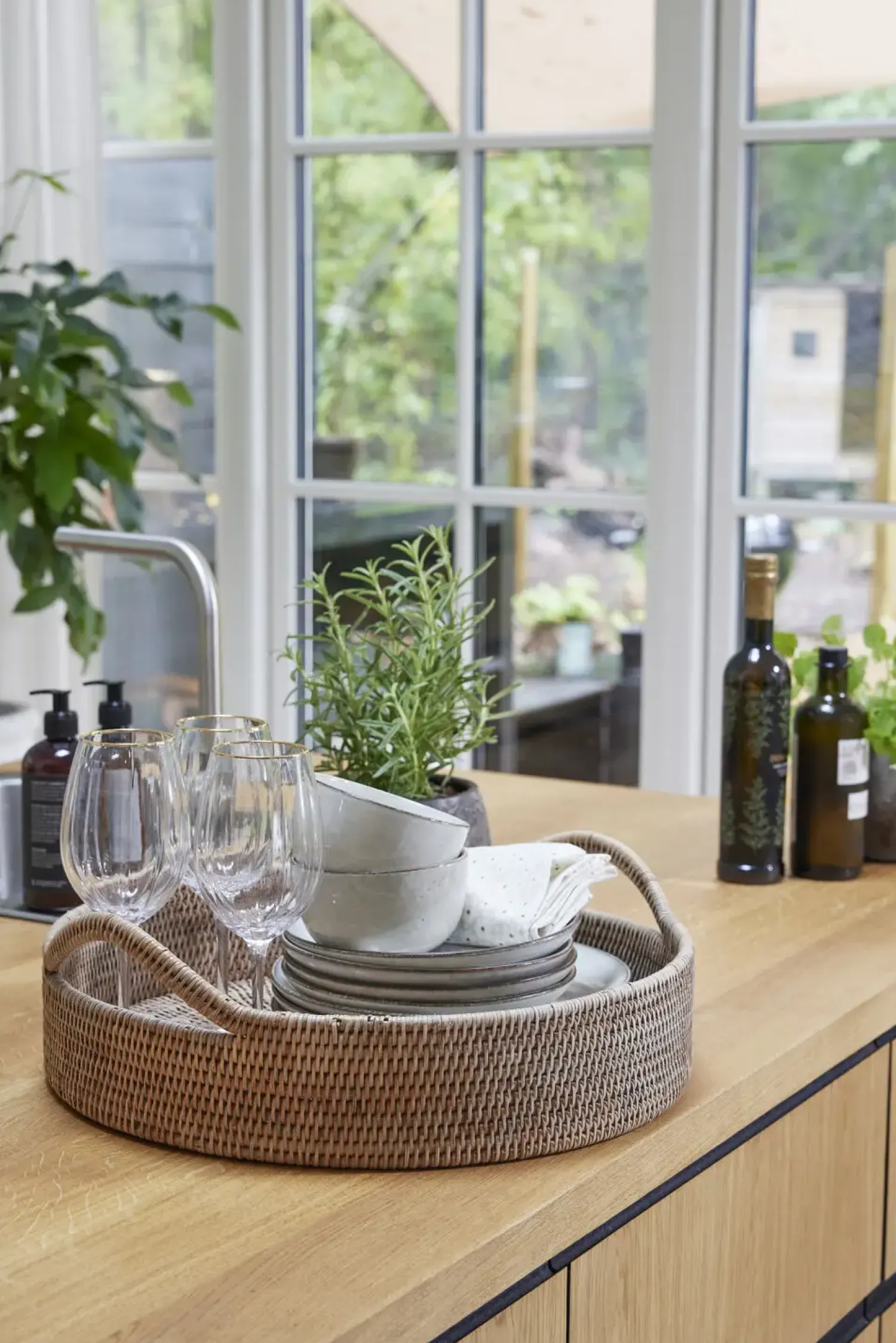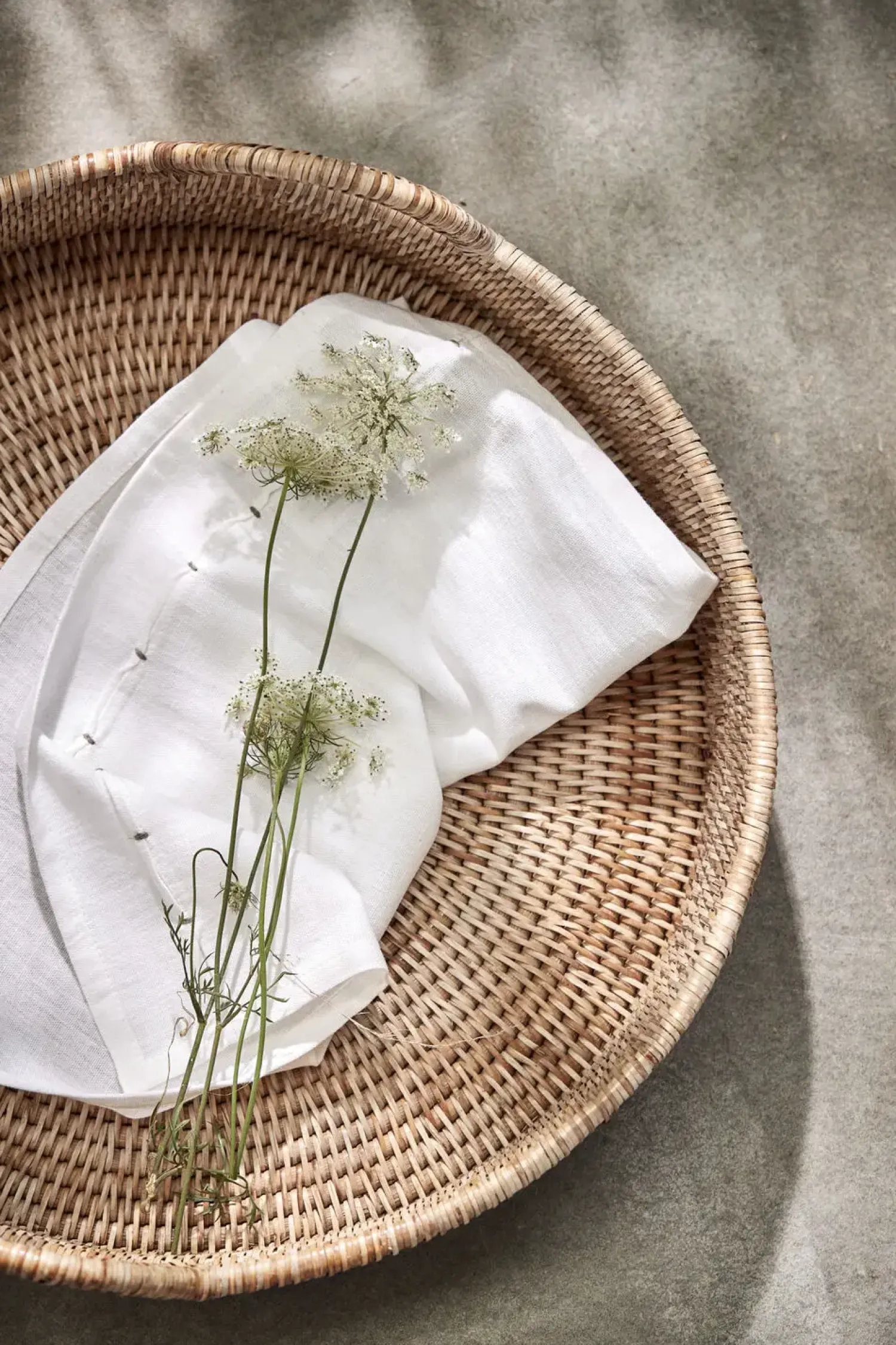 Håndflettet kurv af rattan i høj kvalitet fra vores Norah serie. Kendetegnet ved denne serie er brugen af naturmaterialer som f.eks. bambus og rattan. Det er begge planter, der vokser hurtigt, er nemme at genplante og er et stærkt materiale til boliginteriør. Materialerne flettes og formes med stor præcision og passion – et produkt fra Norah serien kan tage alt fra 1 dag til en hel uge at færdiggøre.