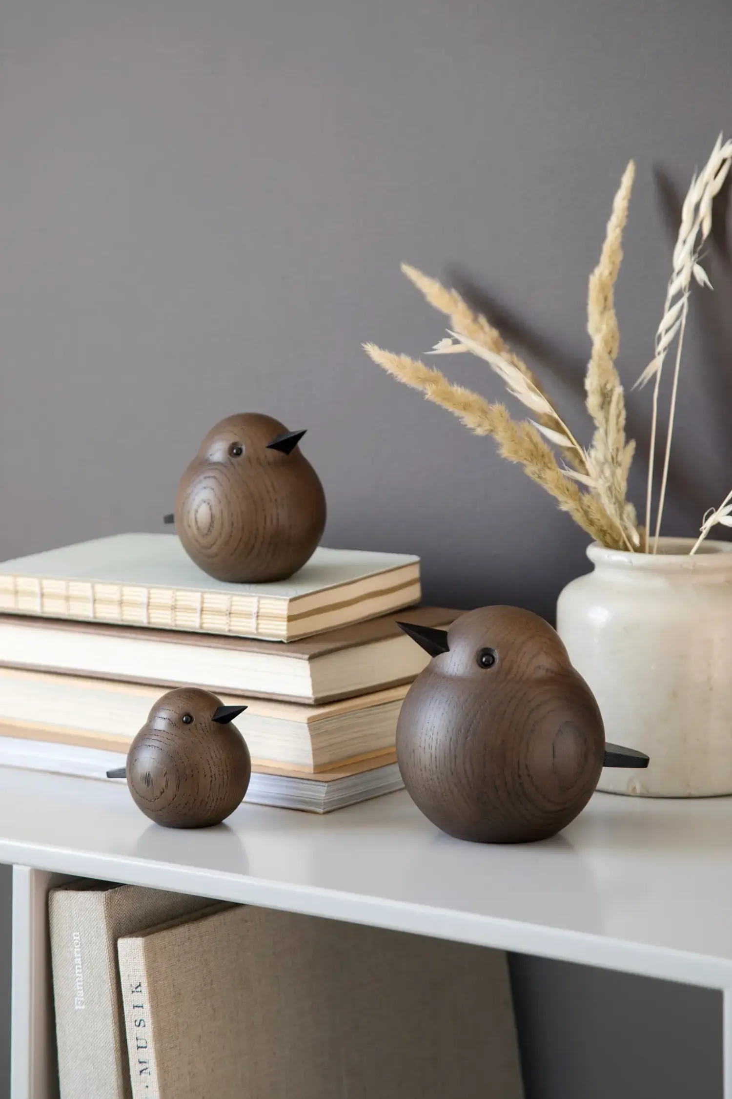 Spurvene er lavet i massivt træ, og er håndlavet af trædrejere.