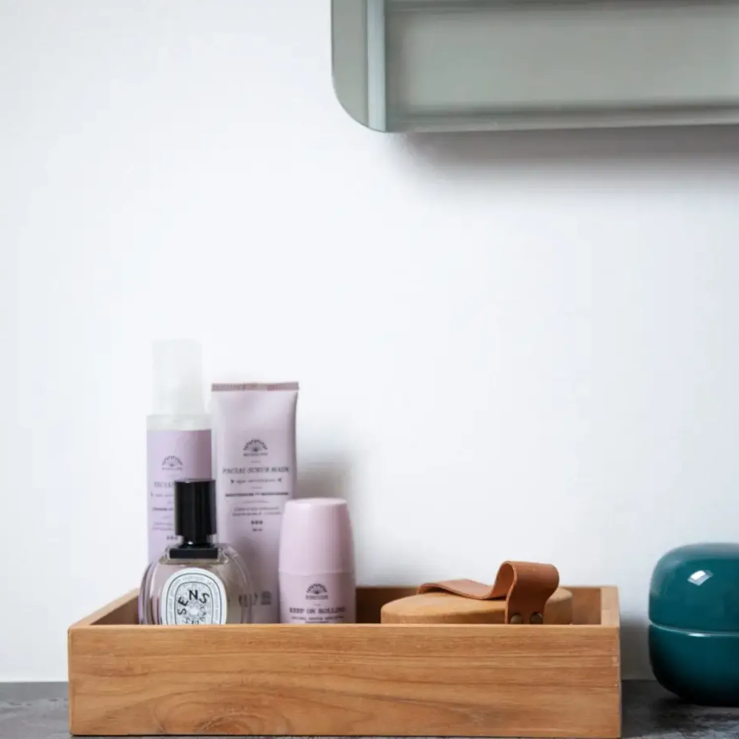 - Opbevaringsbakken er lavet af teaktræ.